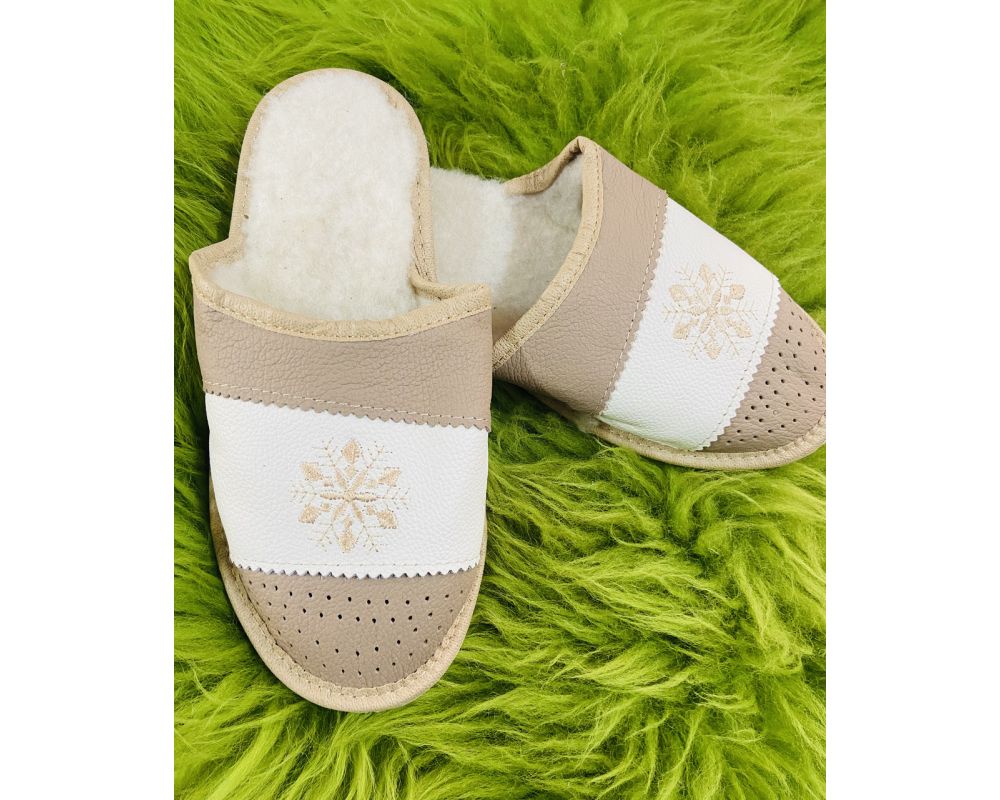 Домашні жіночі шкіряні капці з овечої шерсті
