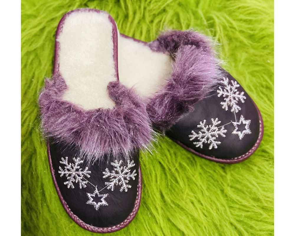 Домашні капці жіночі із шкіри та овечої шерсті, Сніжинка