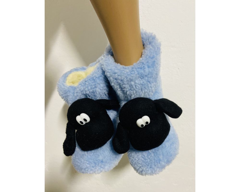 Чуні дитячі з овечої шерсті блакитні, баранчик