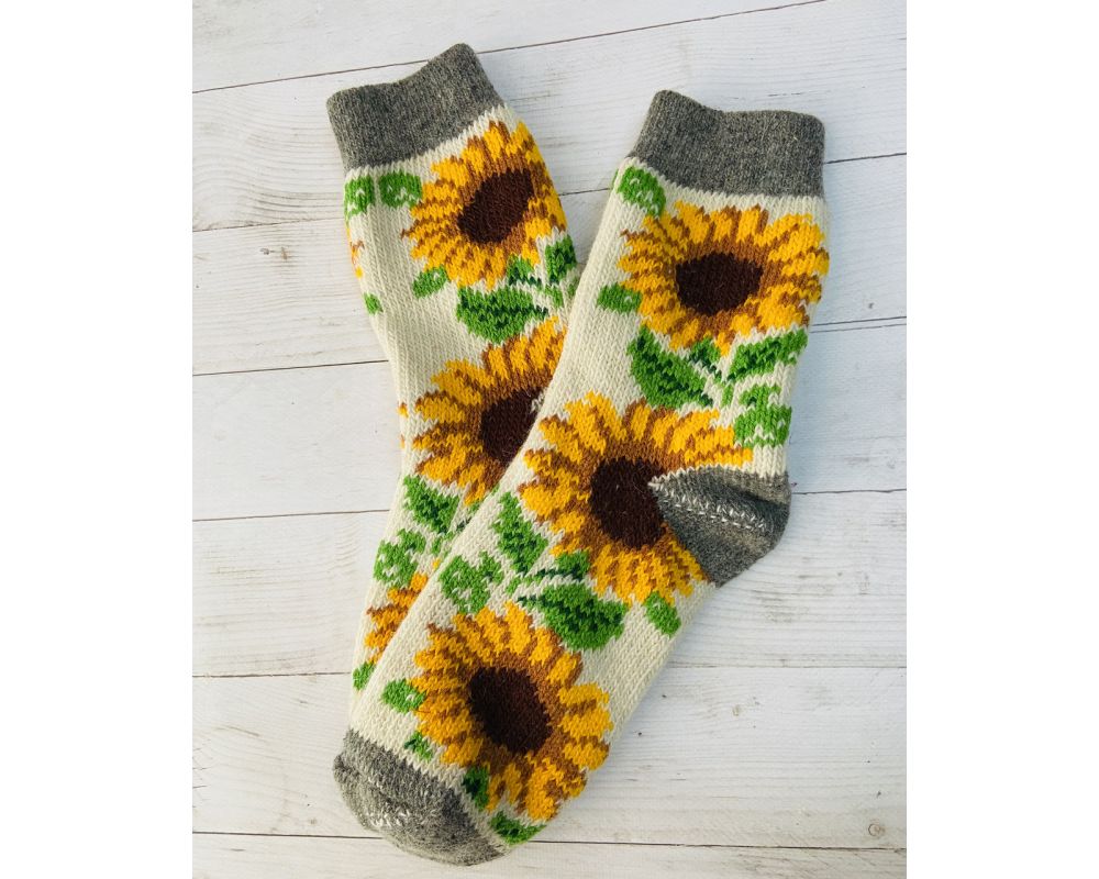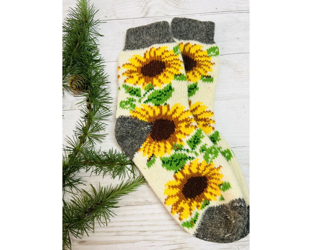 Шкарпетки жіночі з овечої шерсті, соняшники