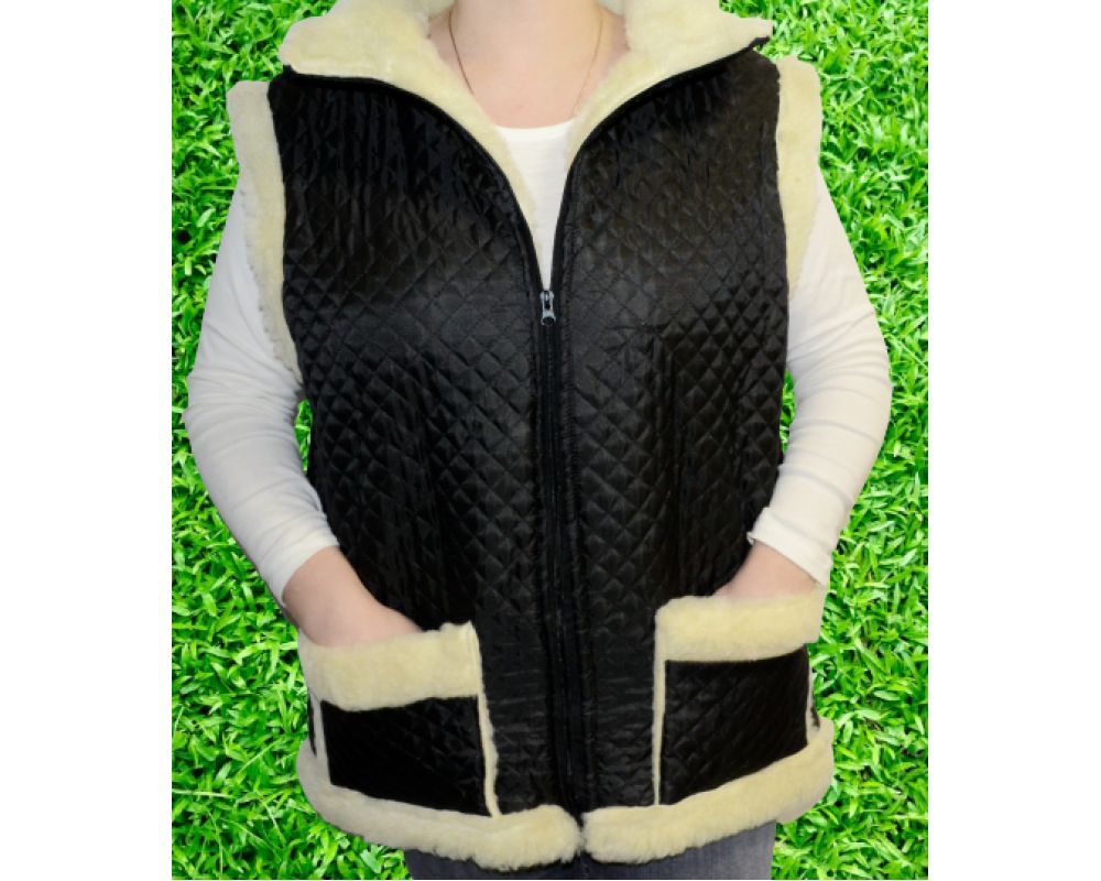 Жилет з овечої шерсті болонь, безрукавка овеча шерсть, чорного кольору