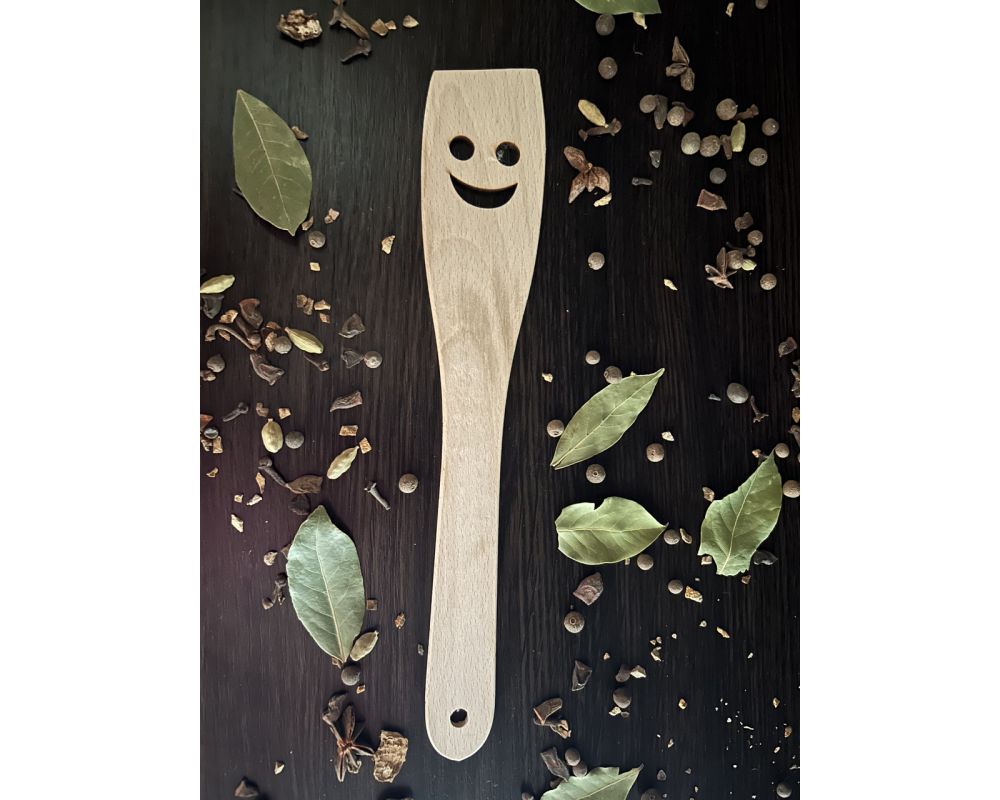 Дерев'яна лопатка "смайл". Призначена для зручної смаження, не зашкодить сковорідки з антипригарним покриттям. Виготовлена з бука.