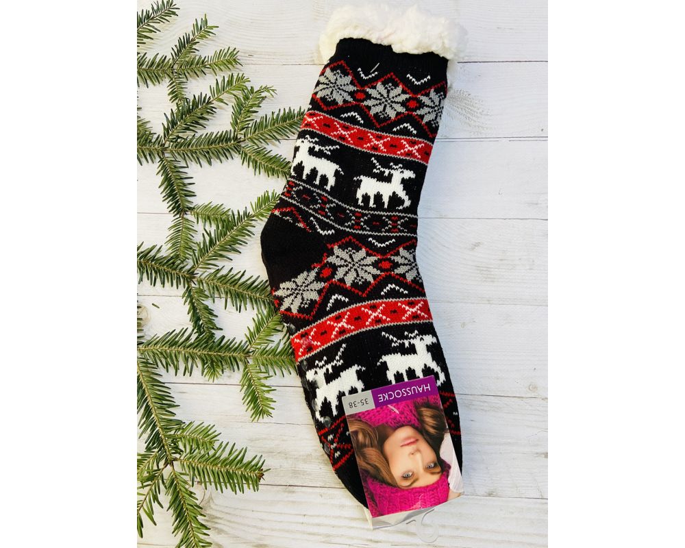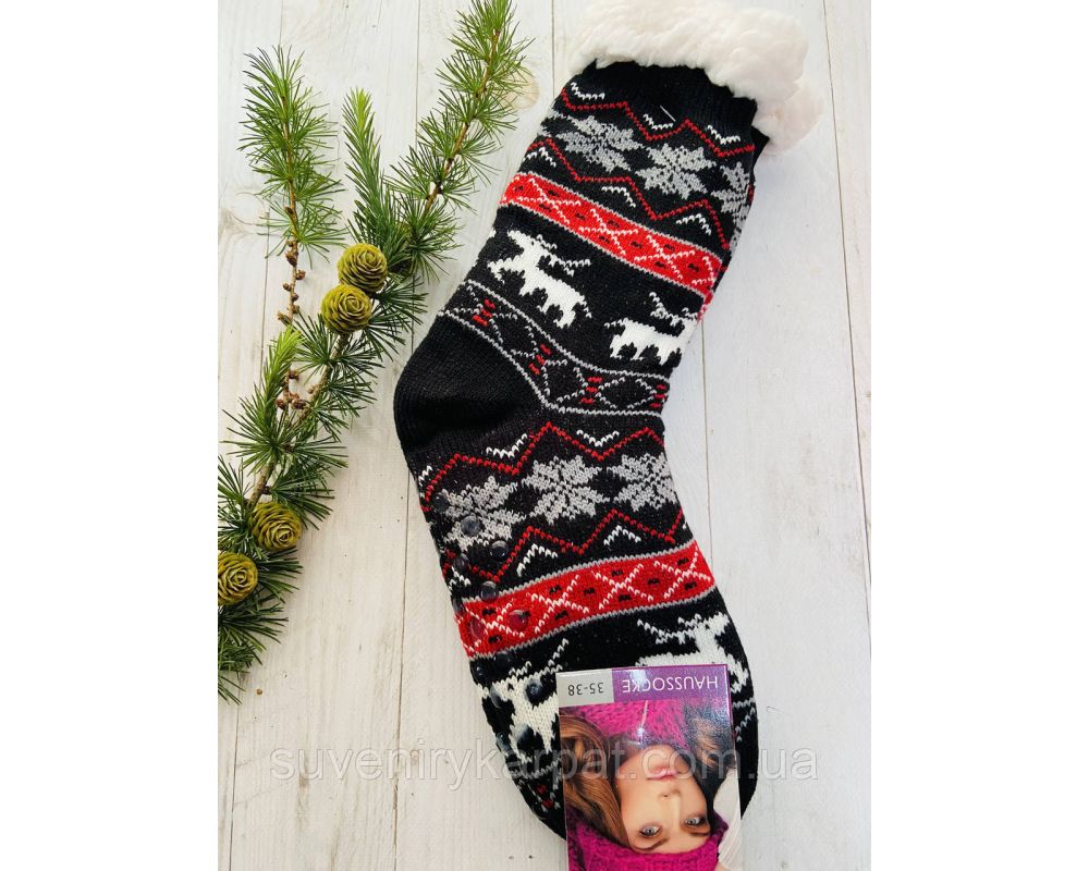 Шкарпетки жіночі з хутра, шкарпетки з овечої шерсті , новорічні носки, носки олені 35-38, 39-41 чорні