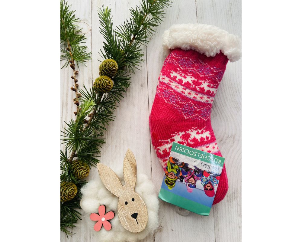Теплі дитячі шкарпетки в асортименті. Дуже м'які, приємні для ніжок дитини. Низ шкарпетки виготовлений з гумовими пухирцями, що робить хороше зчеплення носка з підлогою. Склад 65% шерсть, 25% поліамід, 10% поліакрил.