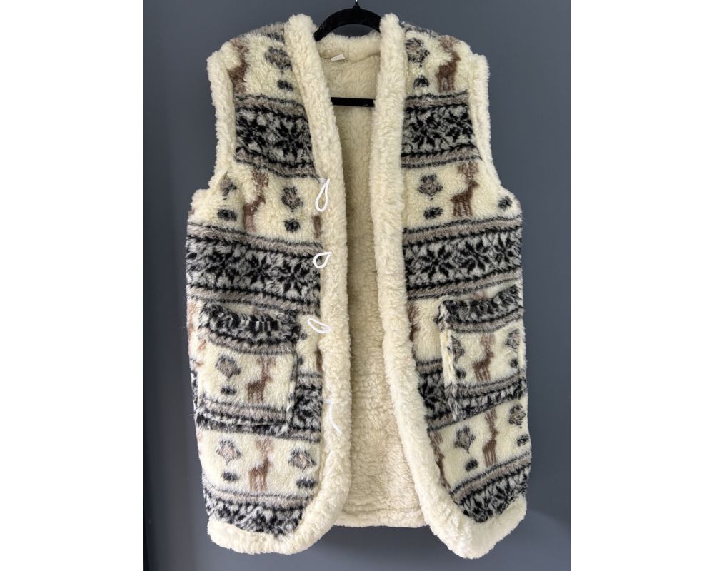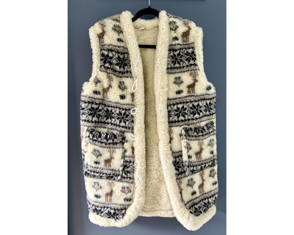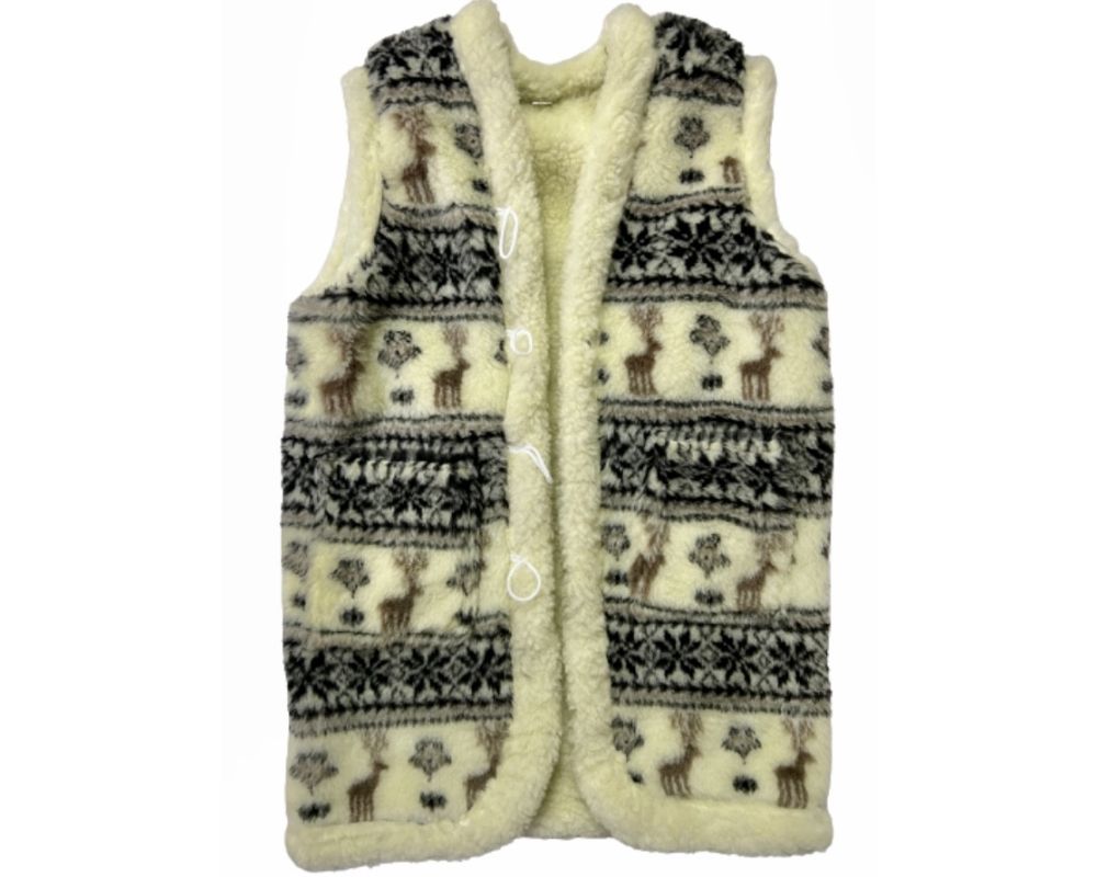 Жилет з овечої вовни олені довгий, Жилетка із овечої шерсті, безрукавка