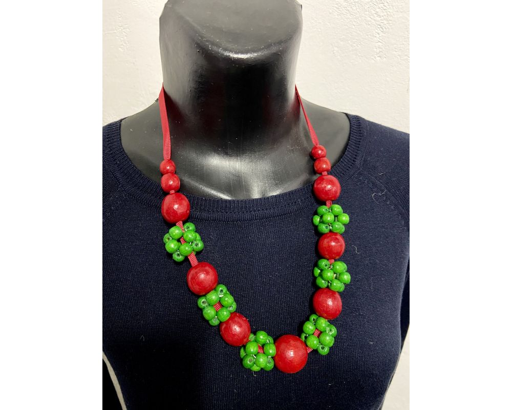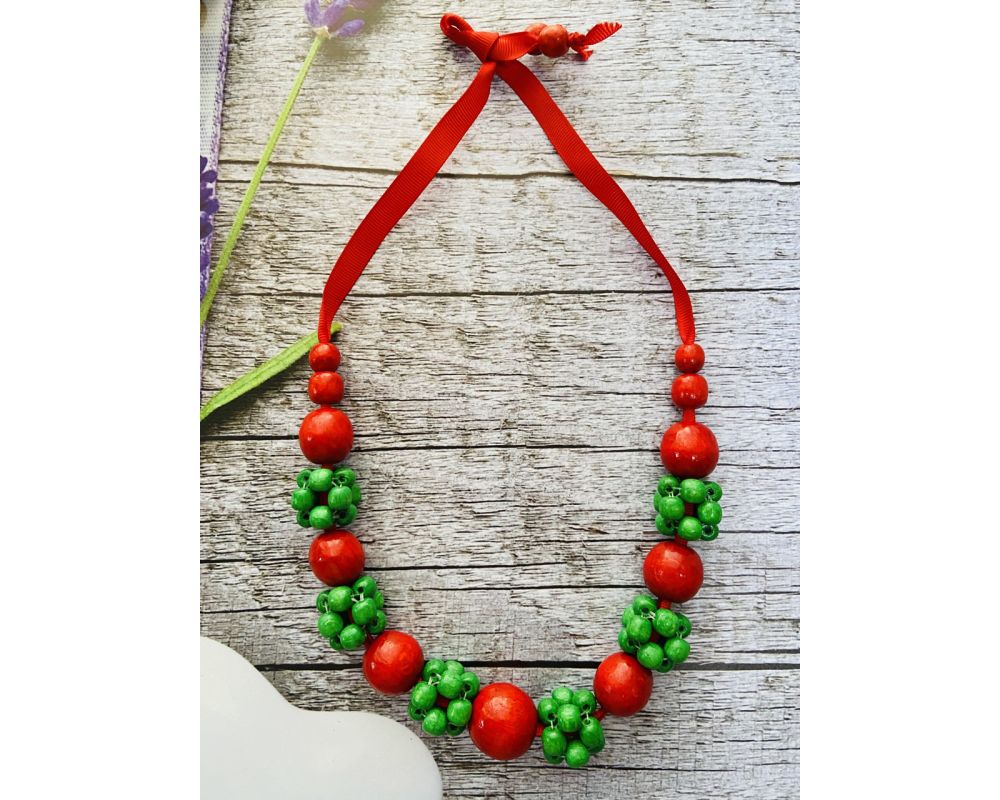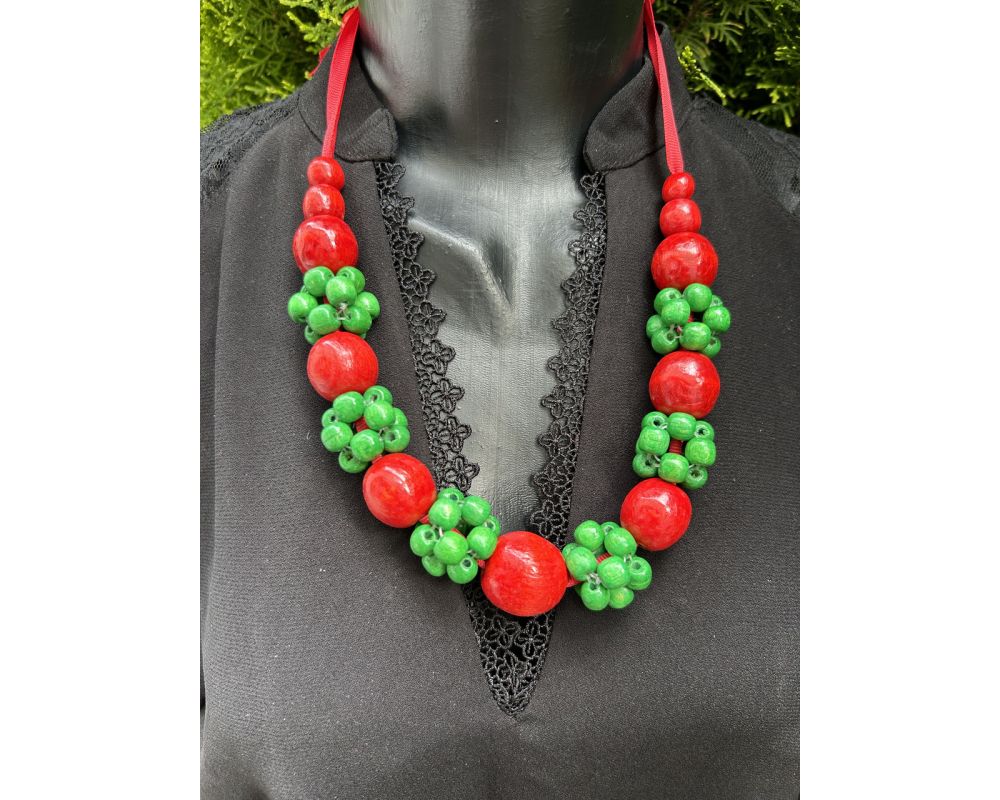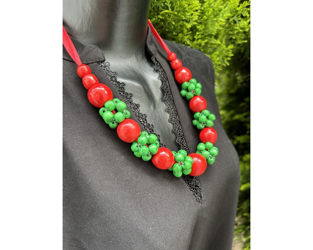 • Намисто з дерева, червоно-зелене, ручна робота