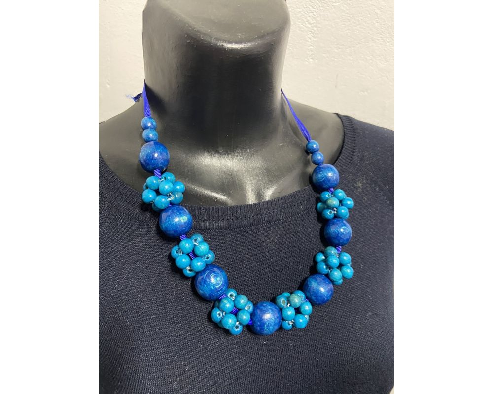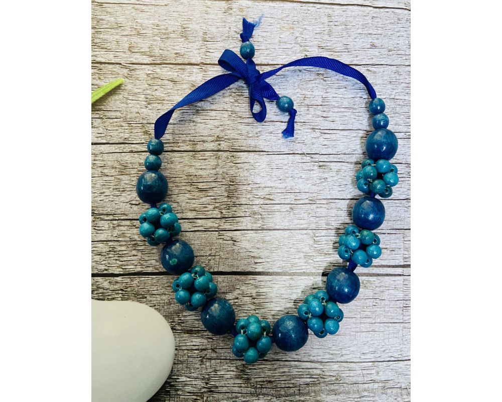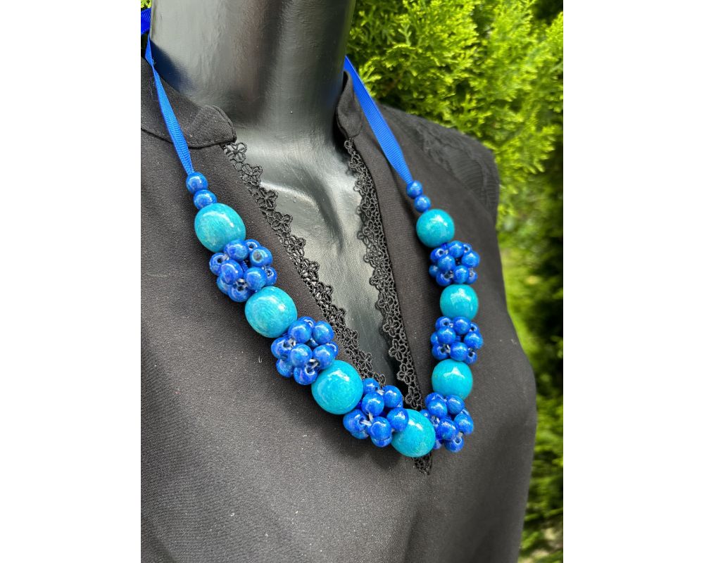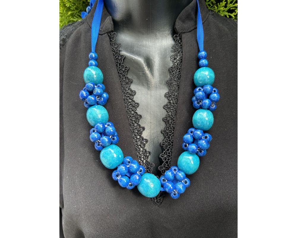 Намисто з дерева, блакитне, ручна робота, українське намисто
