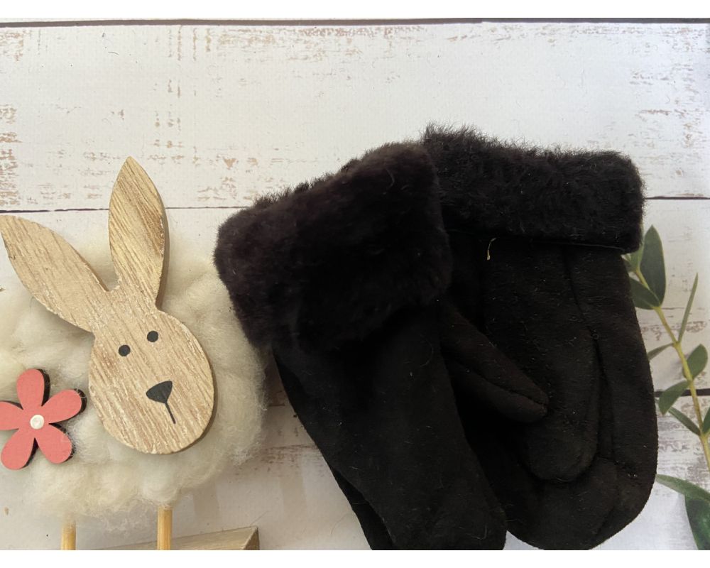 Рукавички дитячі з овечої шерсті , рукавички теплі дитячі, рукавички з овчини чорні