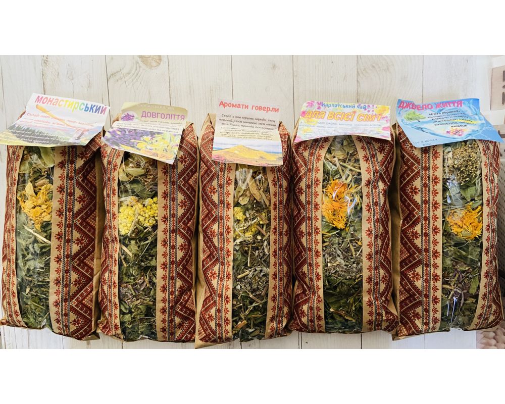 Набір карпаських чаїв, акційна пропозиція. 5 пачок чаю Вага 1 уп 65 г.