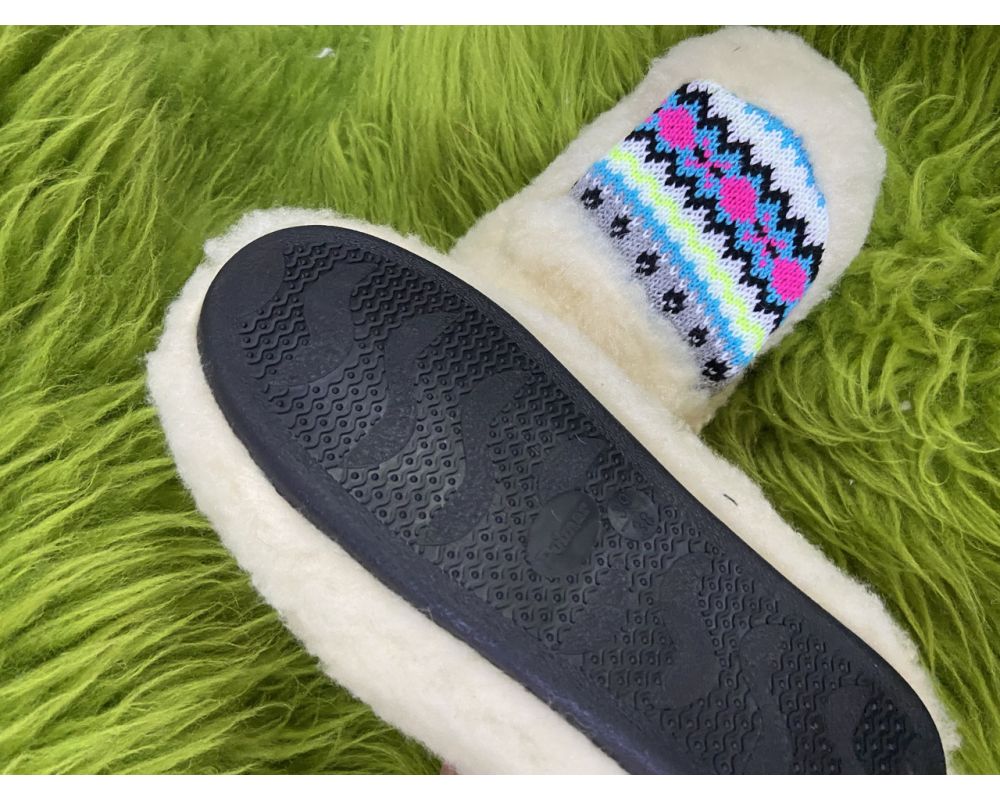• Чуні-тапочки з овечої шерсті на гумовій підошві блакитно-рожевий