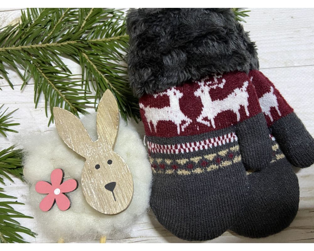 Рукавички дитячі від 2 до 4 років 16 см сіро-бордовий