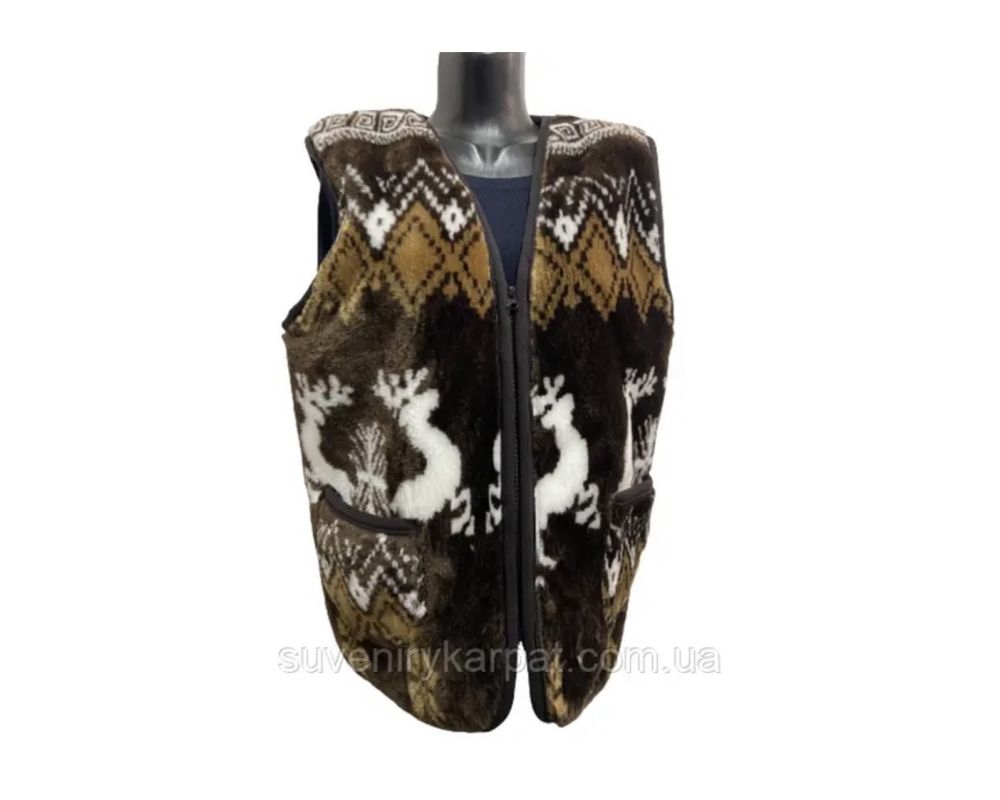 Жилет з овечої вовни орнамент олені на блискавці(безрукавка жіноча, Жилет із овечої шерсті стьобаний жилет із 6XL