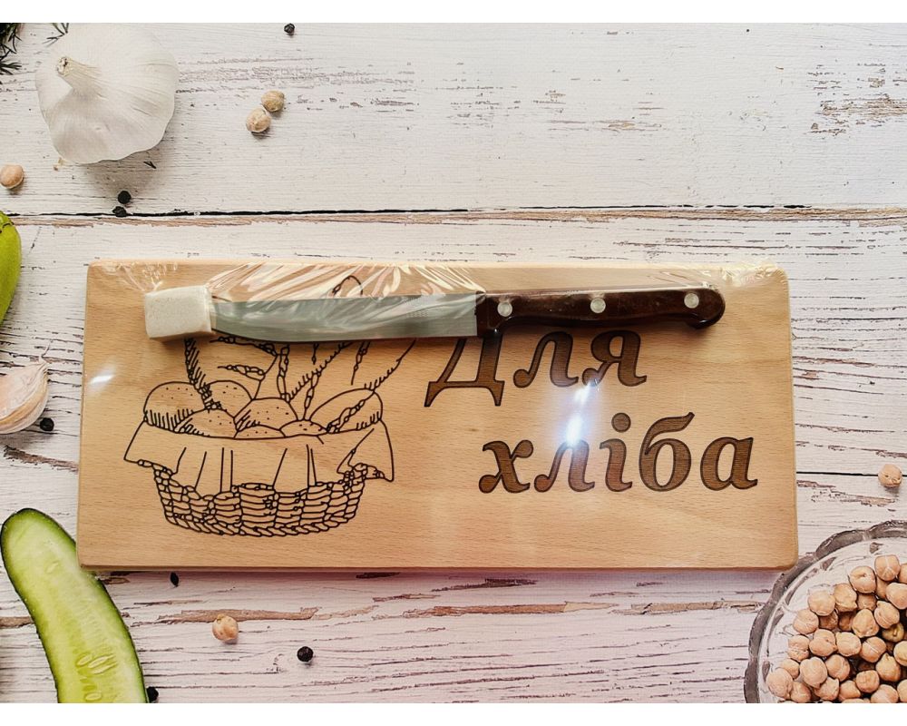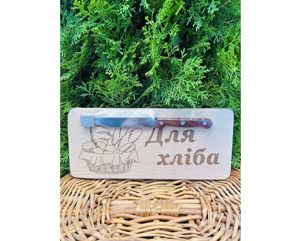 Набір для пікніку, виготовлений з натурального дерева. У набір входити дошка для нарізки та ніж. Розміри 29,5 х 13 см.