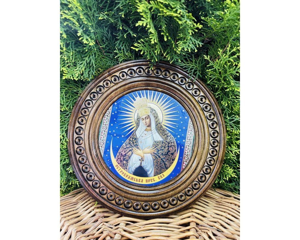 Дерев'яна тарілка (ікона) із зображенням Божої Матері Казанської. Образом Божої Матері благословляють молодих до вінця, саме з нього, осяває світлом незгасимої лампади, з любов'ю і лагідністю дивиться на підростаючих дітей всеблага Божа Матір. Без перебільшення можна сказати, що в кожному будинку знайдеться список цієї чудотворної ікони. Тому що Казанська ікона Божої Матері допомагає в життєвих труднощах, негаразди, не відмовляючи нікому немов постійно відчинене вікно в світ добра і любові. Вважається, що за молитвами перед цією іконою прозрівають сліпі, і не тільки вважається тому є встановлені свідоцтва, але перед нею ж відбувається духовне прозріння сердець, що набагато важливіше для порятунку людської душі.
