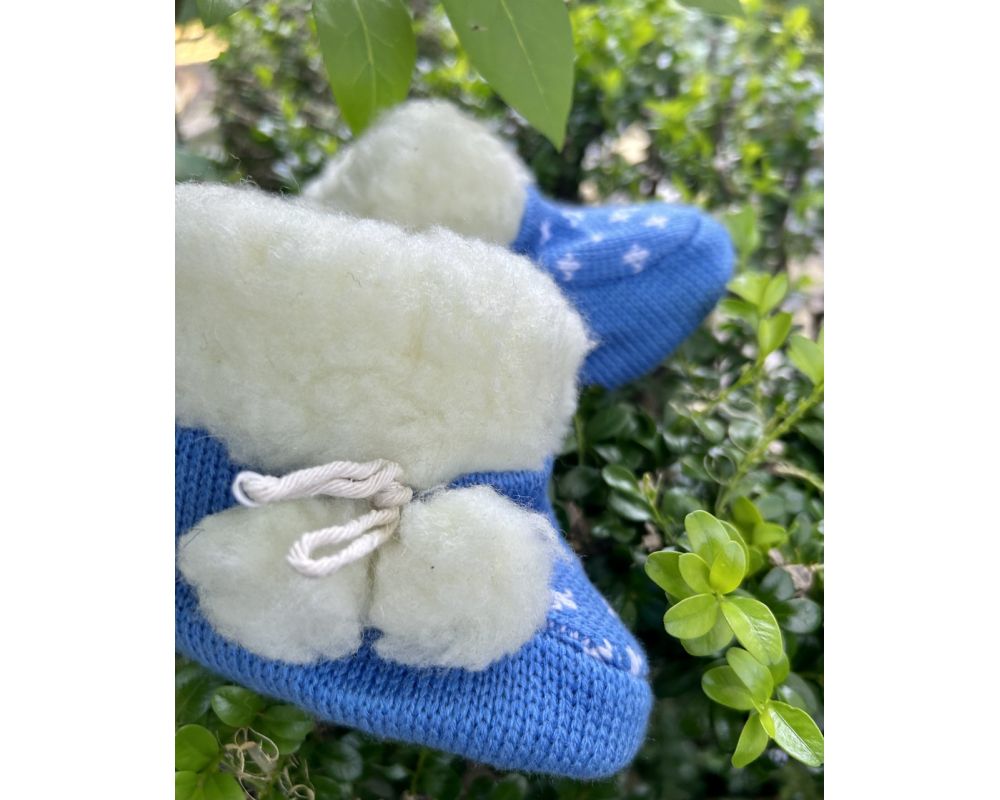 Дитячі пінетки виготовлені із вязаного трикотажу, утеплені овечою шерстю. Пінетки зручні, теплі, комфотрні.
