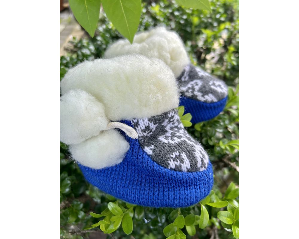 Дитячі пінетки виготовлені із вязаного трикотажу, утеплені овечою шерстю. Пінетки зручні, теплі, комфотрні.