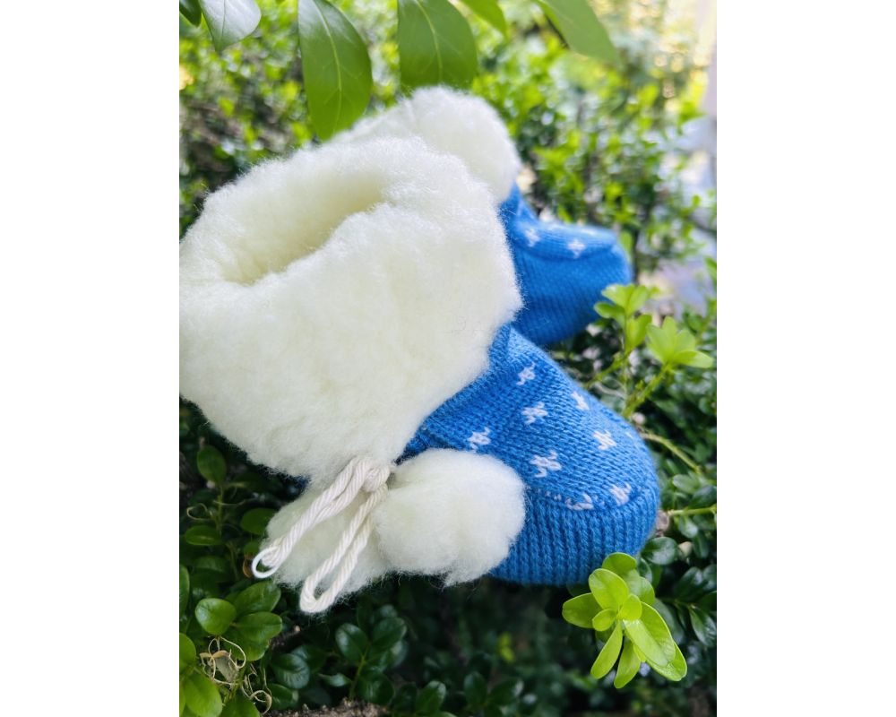Дитячі пінетки виготовлені із вязаного трикотажу, утеплені овечою шерстю. Пінетки зручні, теплі, комфотрні.