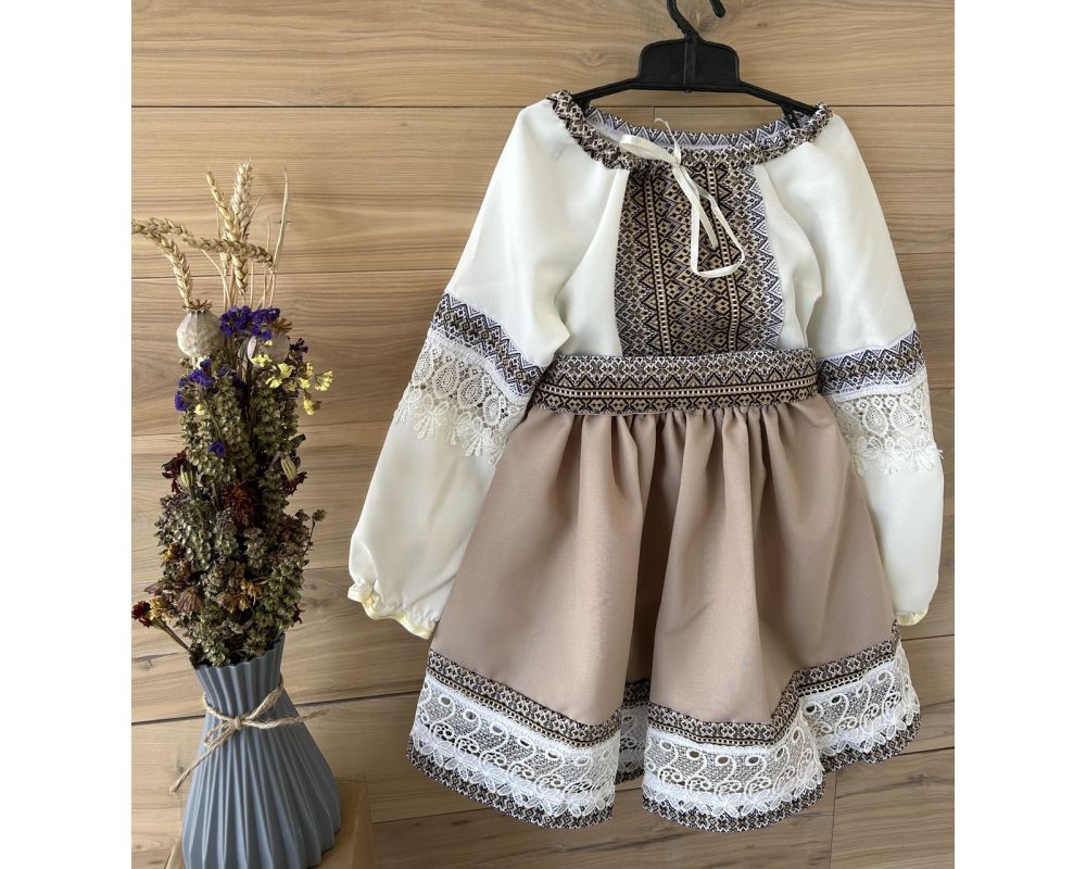 Вишитий костюм для дівчинки в національному українському стилі, оздоблений мереживом.