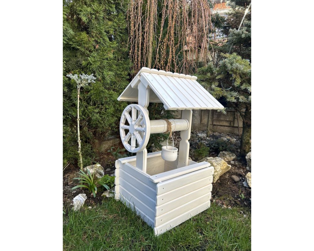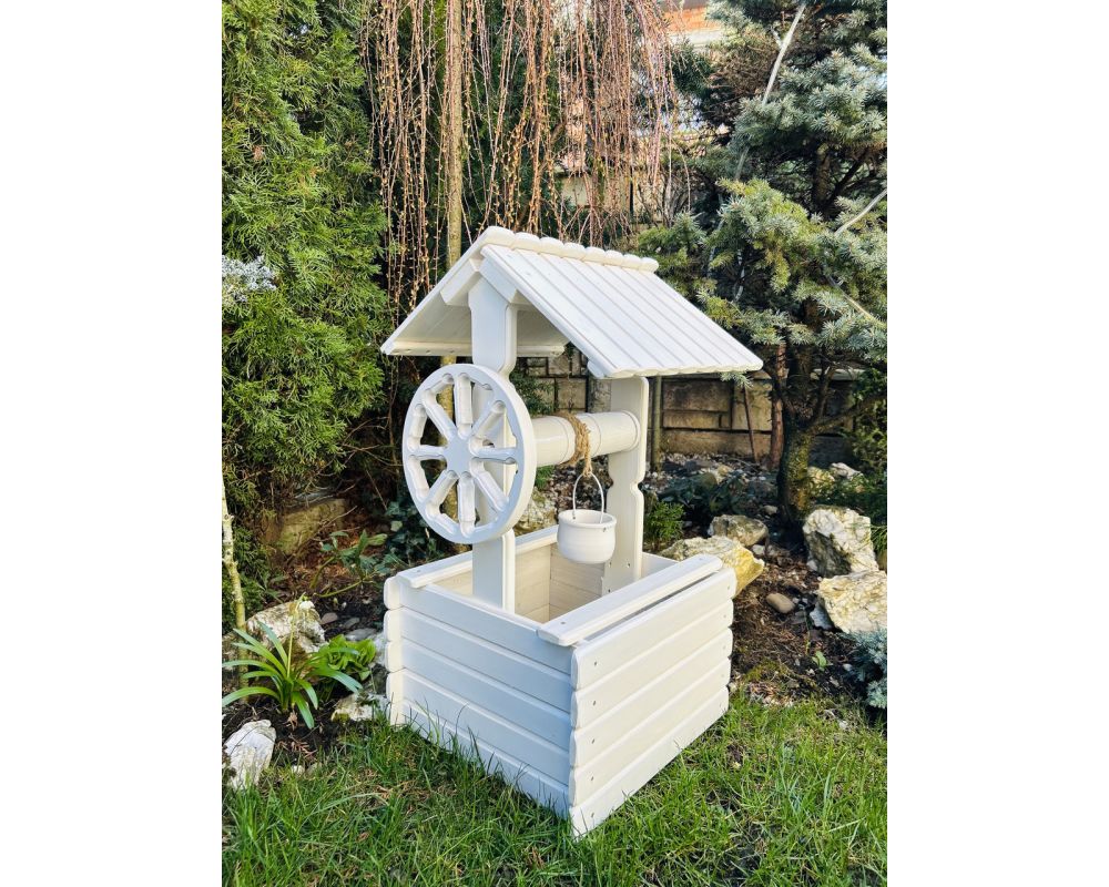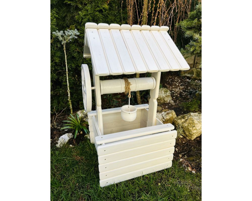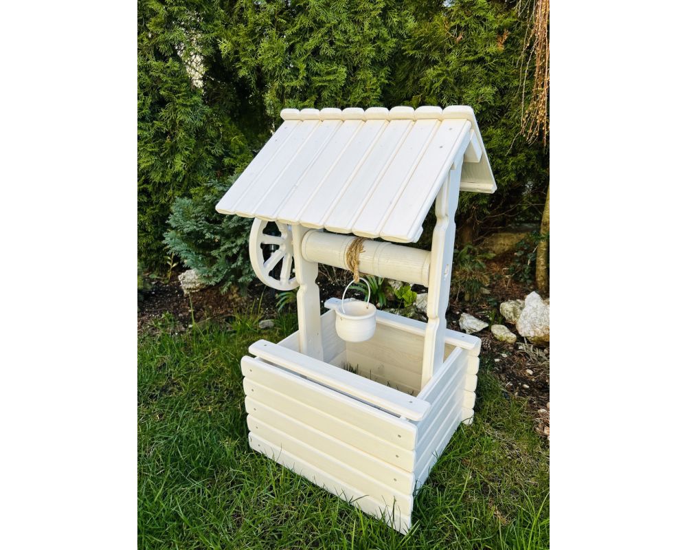 Декоративний колодязь, виготовлений з натурального дерева, ручна робота. Колодязь стане яскравою прикрасою Вашого будинку, заміського ділянки, гармонійно впишуться в ландшафтний дизайн. Розміри 75х42х42 див.