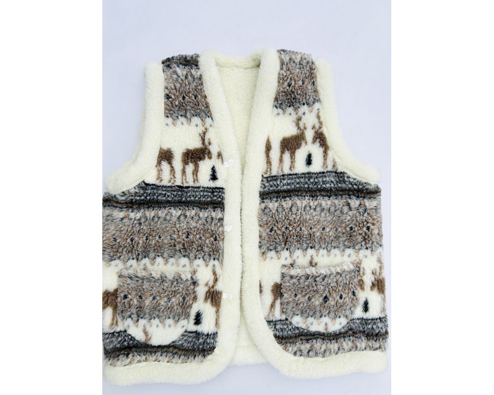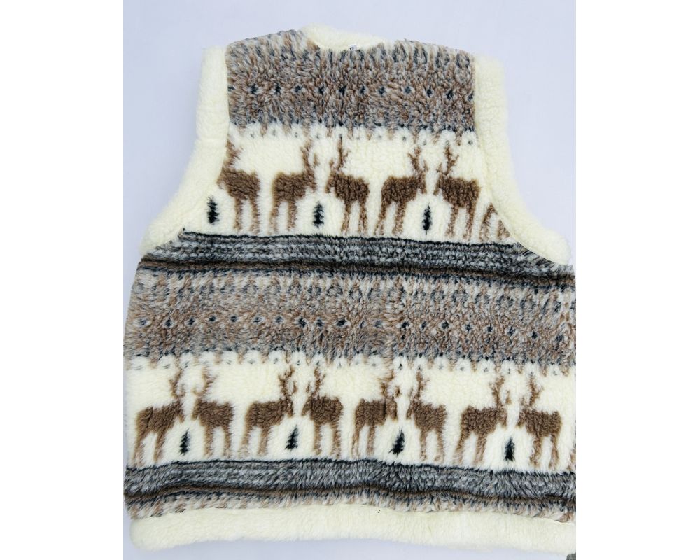 Жилет з овечої шерсті, орнамент олені, подвійна, безрукавка, камізелька 54 розмір 56