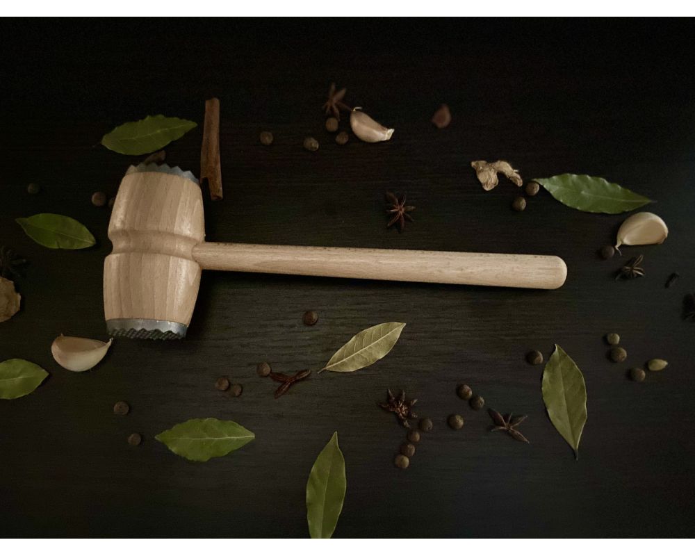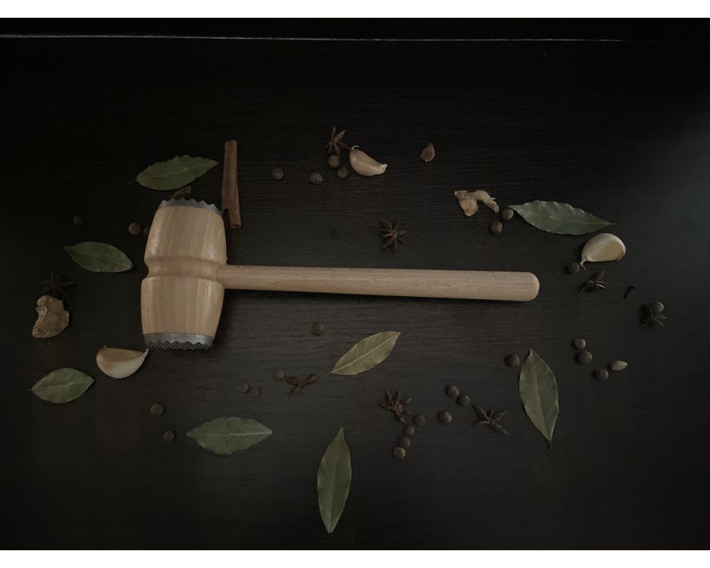 Кухонний молоток для відбивання м'яса, виготовлений з натурального дерева, має металеві насадки, за допомогою яких легко відбивати м'ясо для приготування улюблених страв.