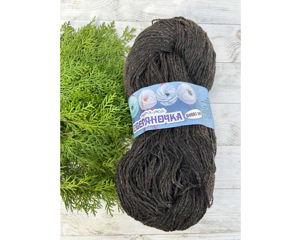 Пряжа з овечої шерсті для вязання Сіверяночка 200 г темно-коричнева