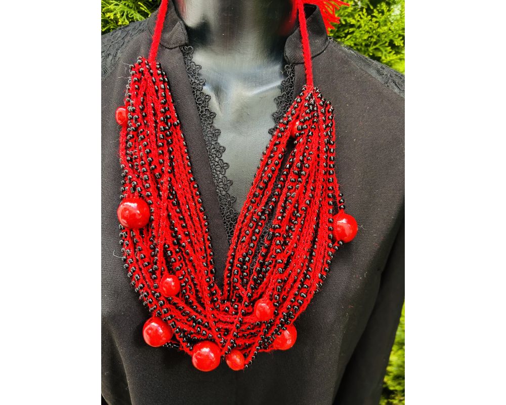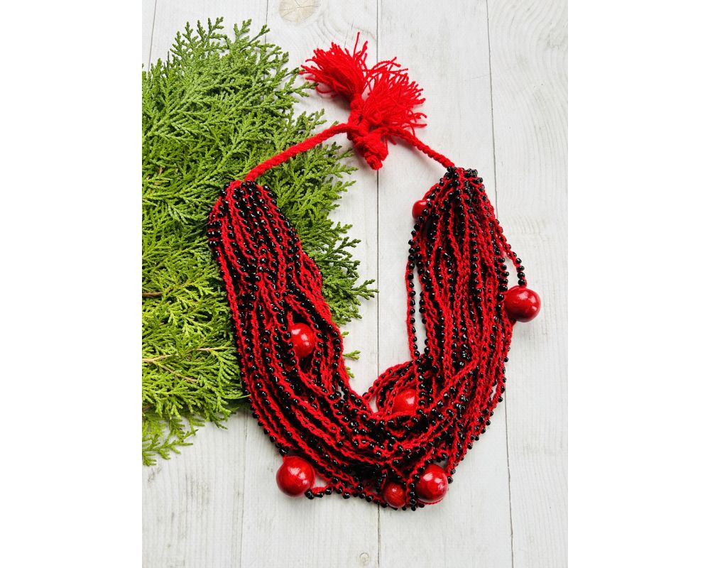 Намисто ефектно прикрасить вишиванку, діловий офісний костюм, вечірнє плаття, повсякденне вбрання. Намиста виготовлені з бісеру, ручна робота, 25 рядів.