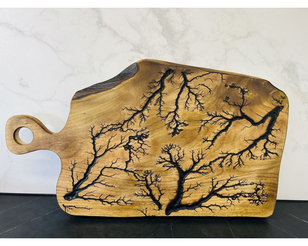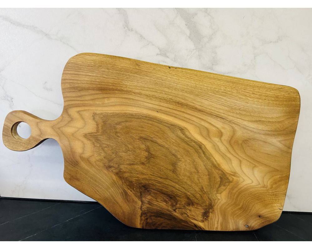 Дерев'яна дошка для подачі блюд, обробна дошка, виготовлена з дерева, має надзвичайно красиву структуру та арт дизайн, використовується для подачі різних страв та для нарізання продуктів. Дерево: горіх.