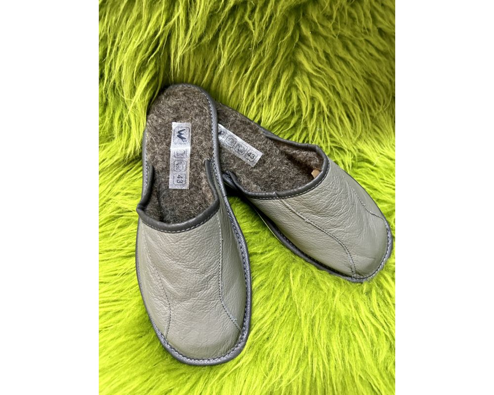 Домашні капці чоловічі із шкіри та овечої шерсті. Теплі, комфотні, гарної якості.