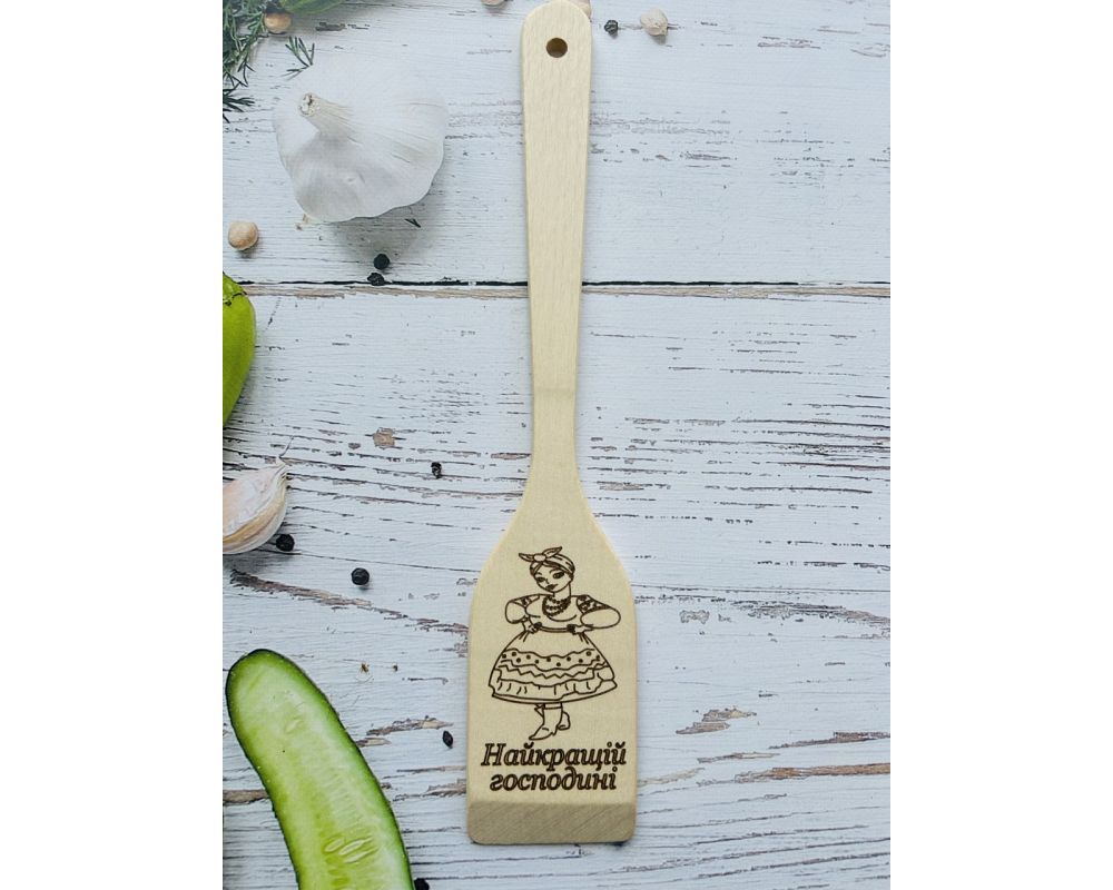 Дерев'яна лопатка з написами в асортименті. Для зручного перевертання, не зашкодить сковорідки з антипригарним покриттям.