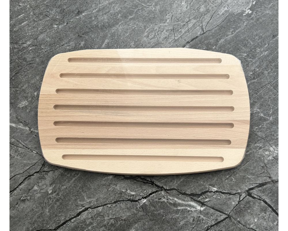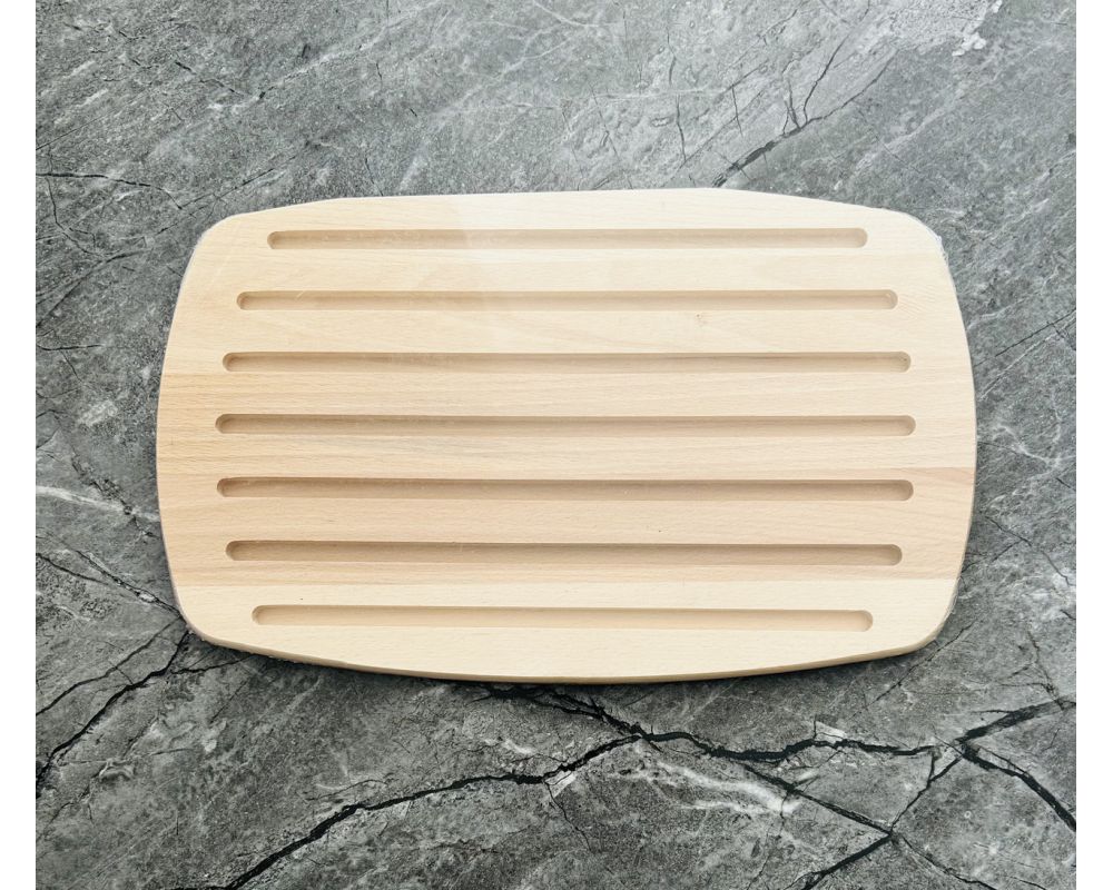 Дерев’яна дошка для нарізки хліба. Зручна у використанні, всі крихти хліба залишаються у жолобках. Розміри 25х40. Назамінний атрибут на кухні.