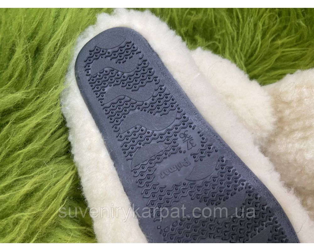 Чуні з овечої шерсті, гумова підошва білі із зав’язками