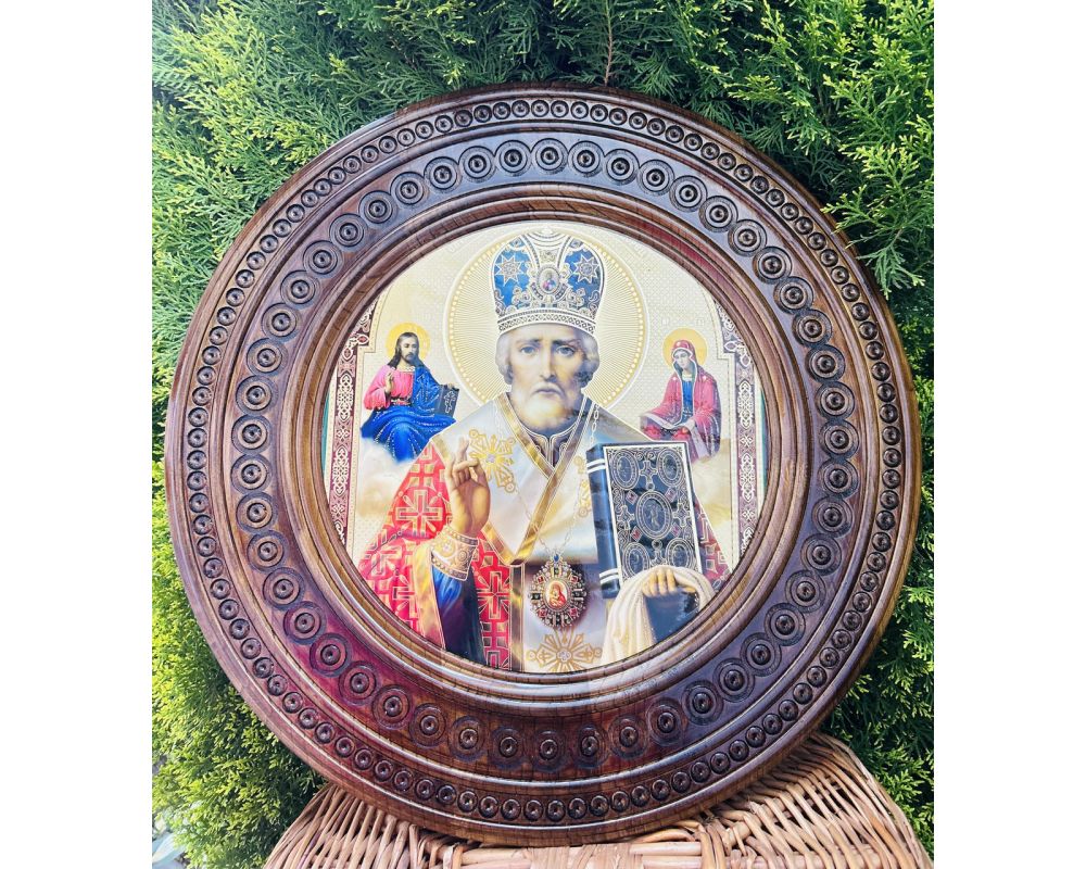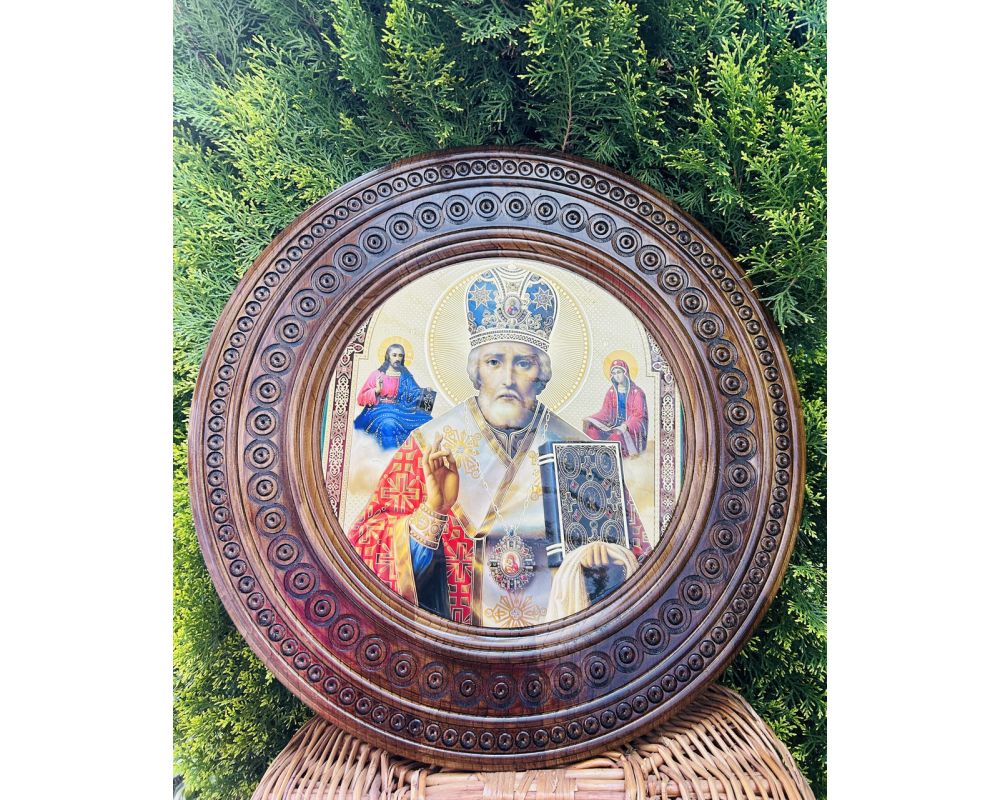 Дерев'яна тарілка (ікона) "Св. Микола Чудотворець" 50 см
