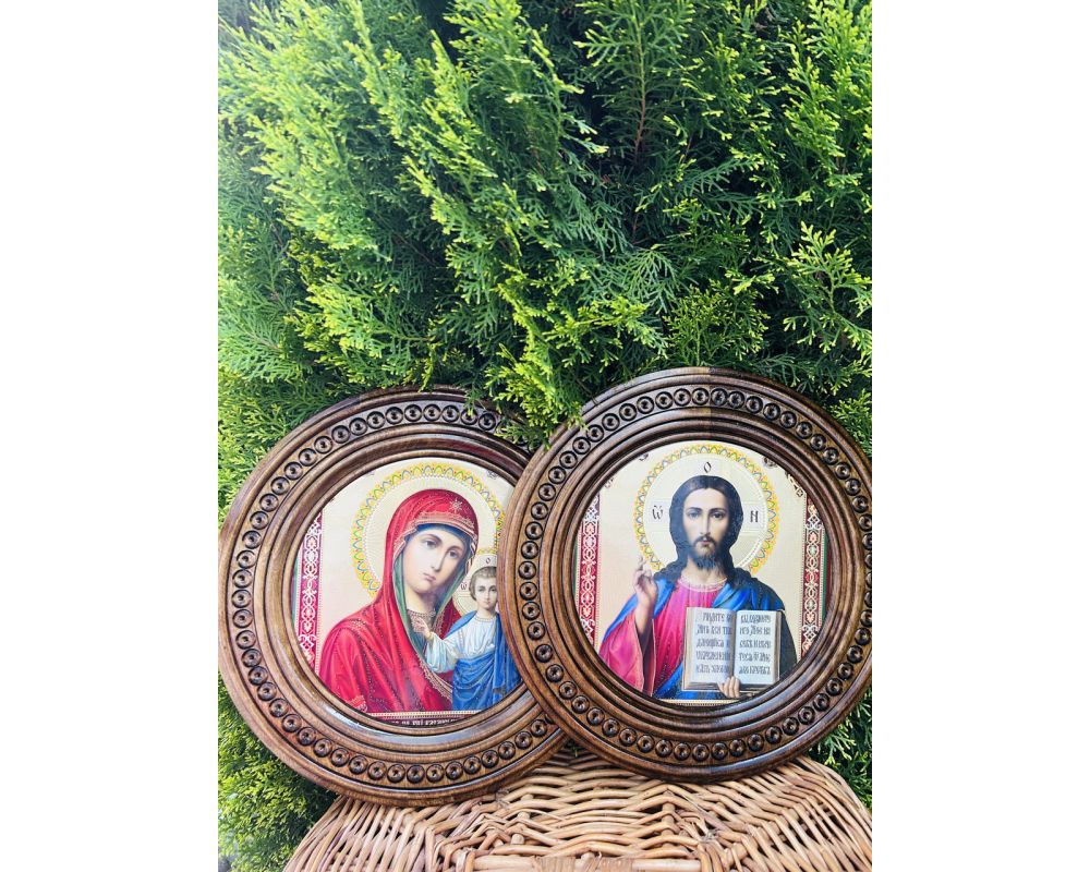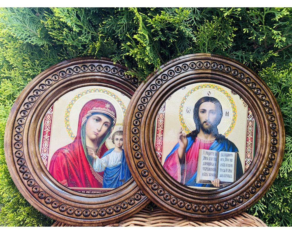 Набір вінчальних ікон ручної роботи з натурального дерева — ідеальний вибір для таїнства вінчання та створення сімейного іконостасу. Класичні православні образи Ісуса Христа та Пресвятої Богородиці оформлені в гармонійному комплекті, що символізує благословення молодої пари на спільне життя.