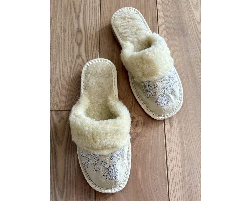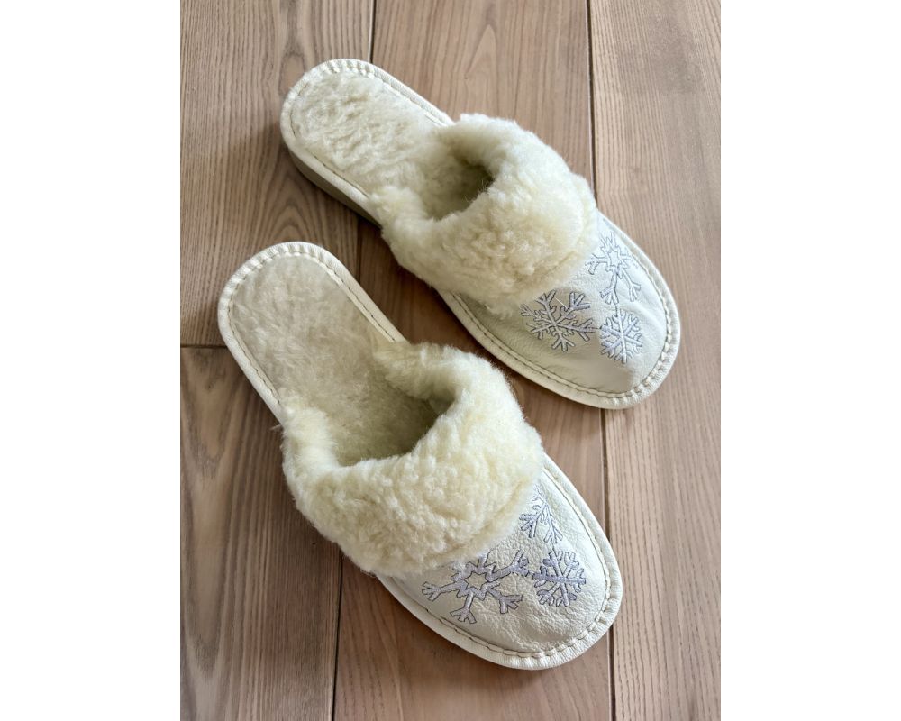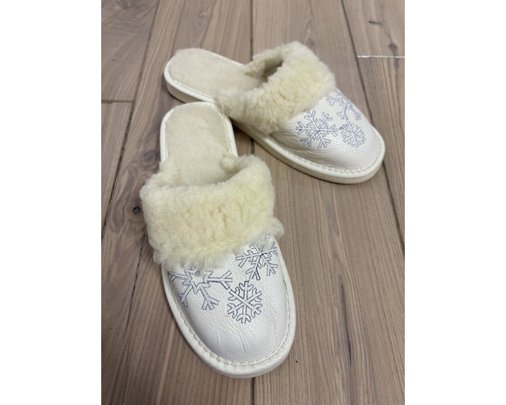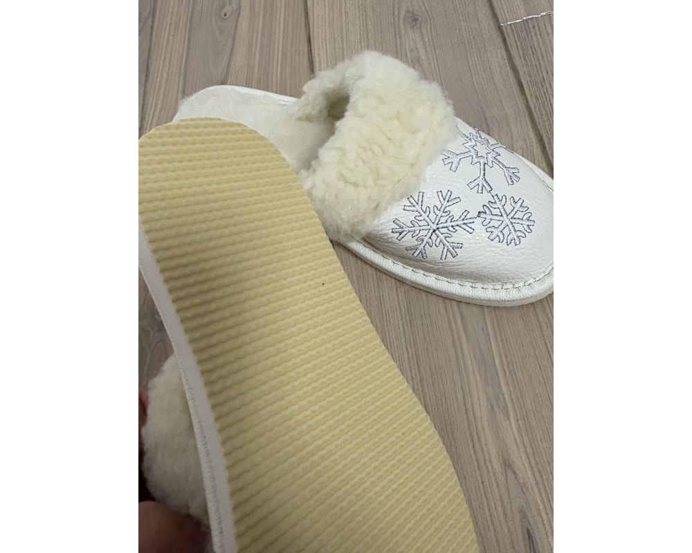 • Жіночі зимові капці з хутром шкіряні домашні теплі тапочки з вишивкою