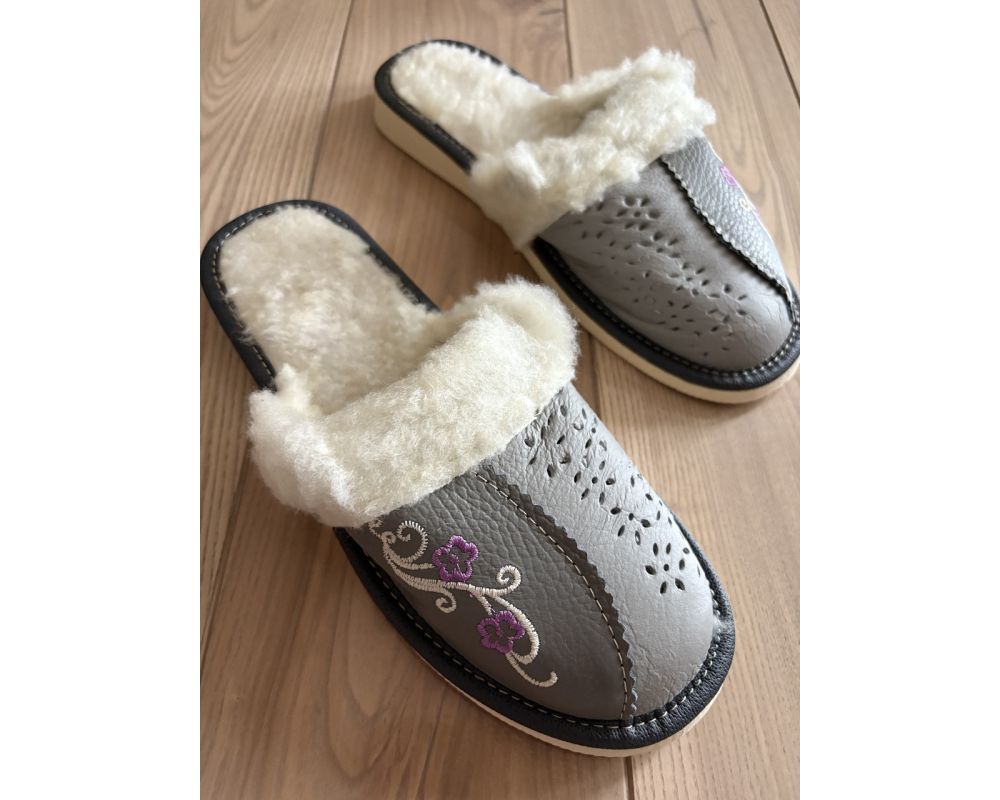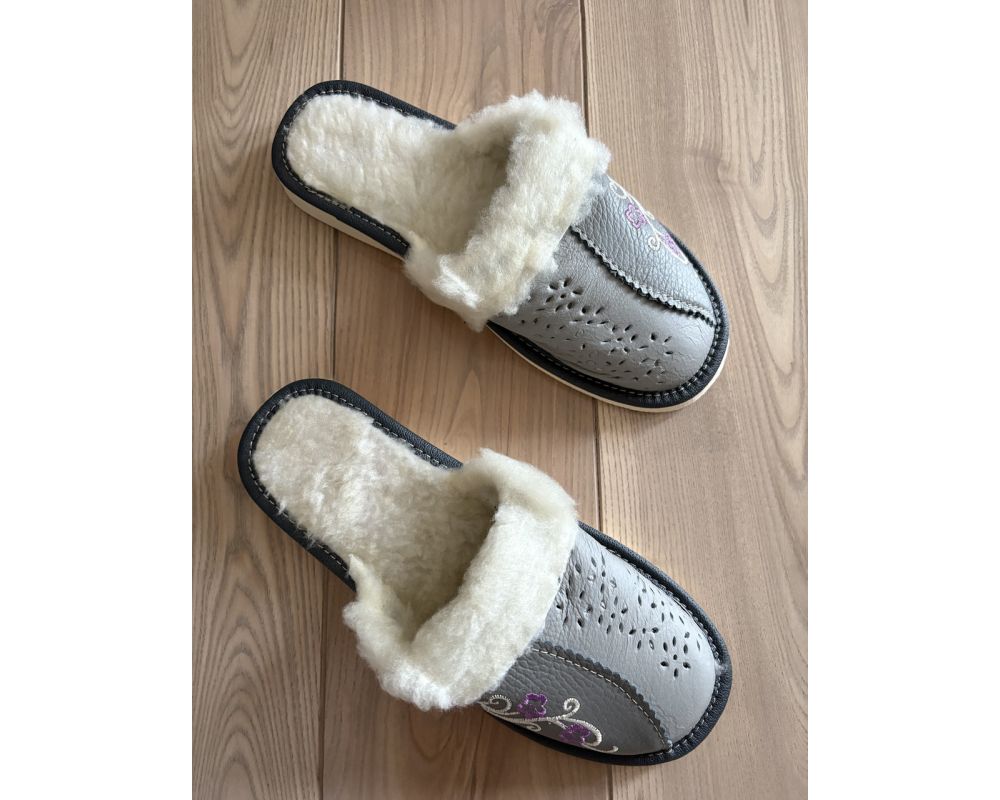 Жіночі зимові капці з хутром шкіряні домашні теплі тапочки з вишивкою 36 37