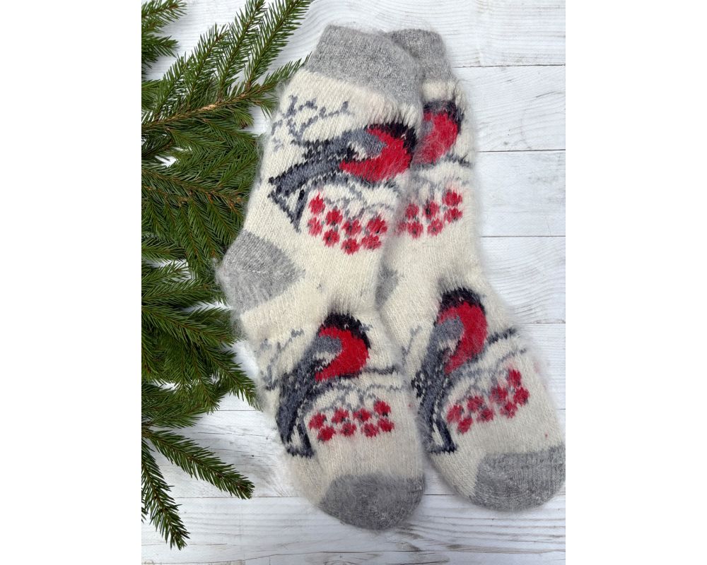Теплі шкарпетки з козячого пуху з візерунком “Снігурі”