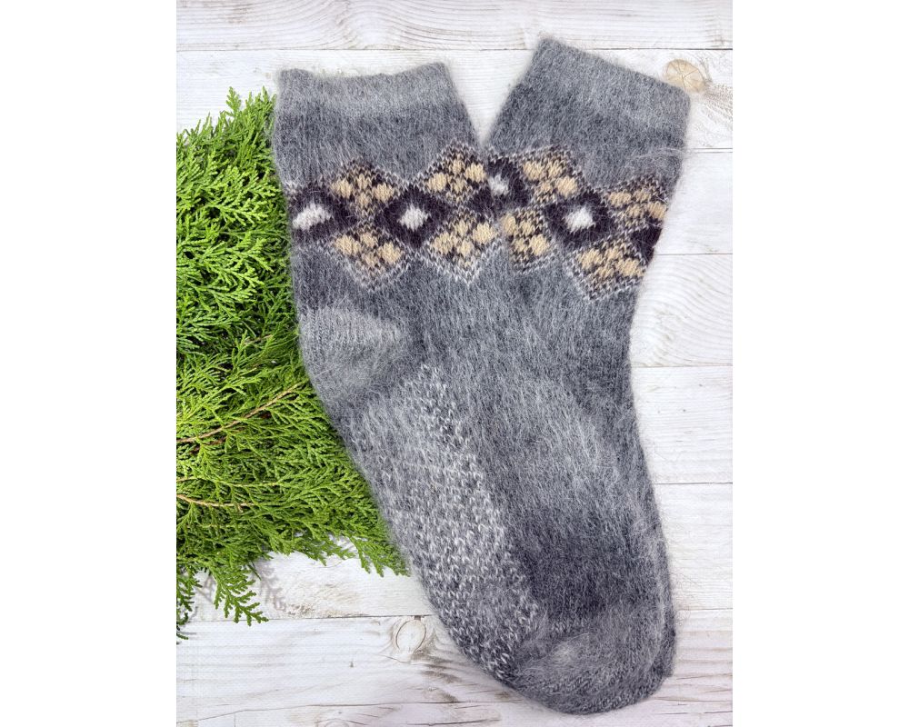 Теплі шкарпетки з козячого пуху з візерунком.