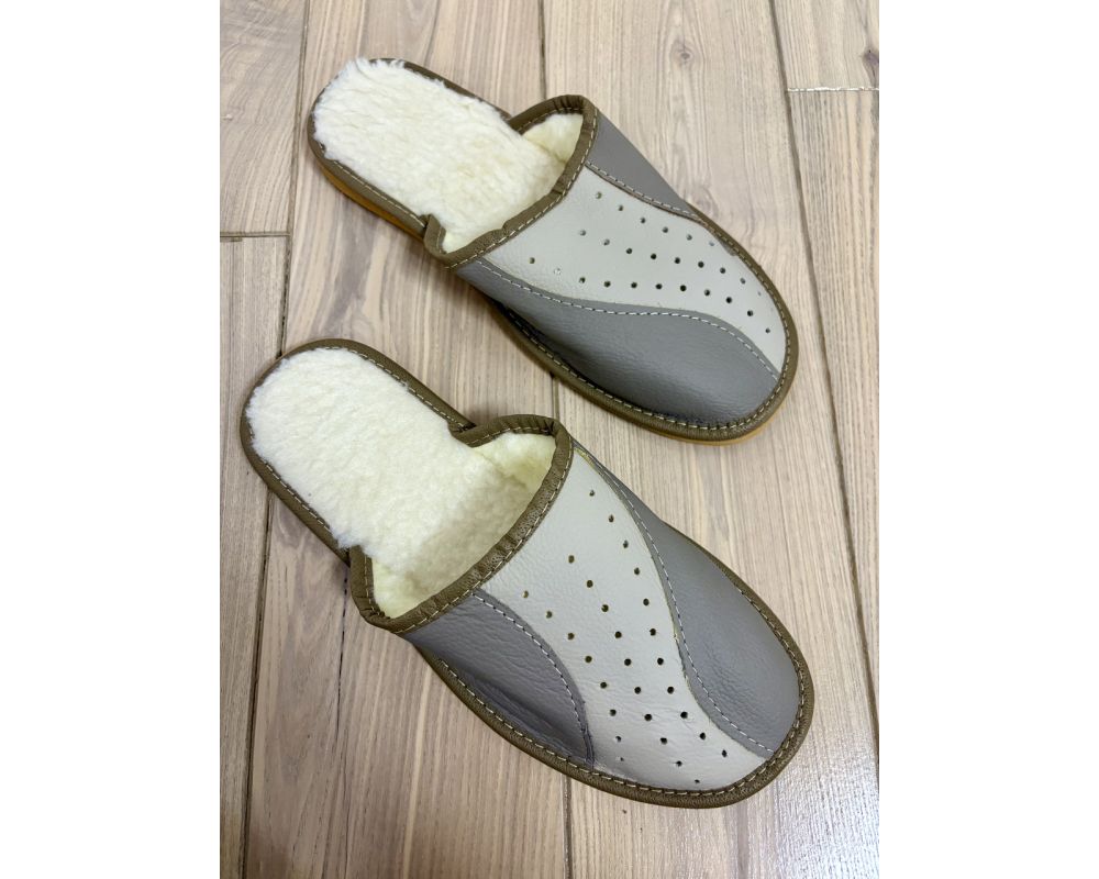 Домашні чоловічі капці із шкіри та овчини розміри від 40 до 43