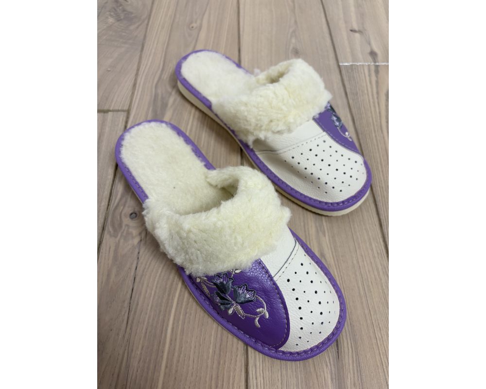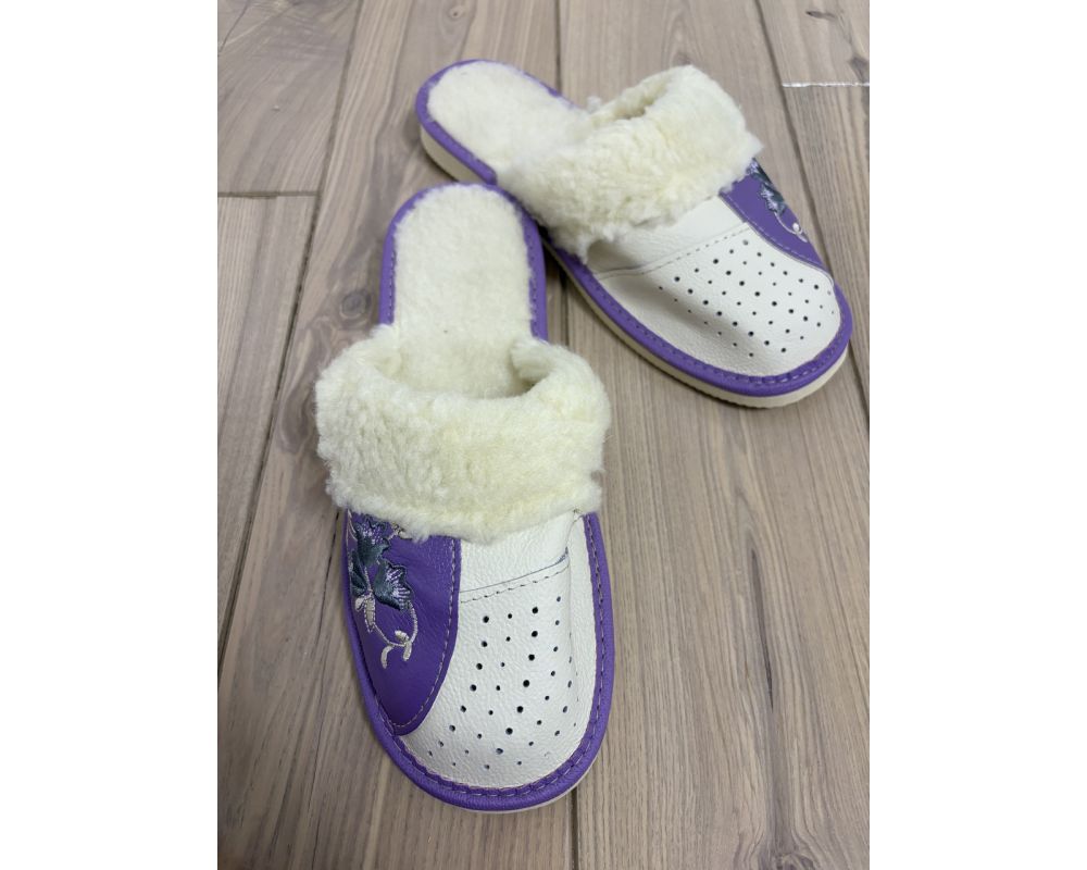 Домашні шкіряні жіночі тапочки з овечої вовни розмір 41