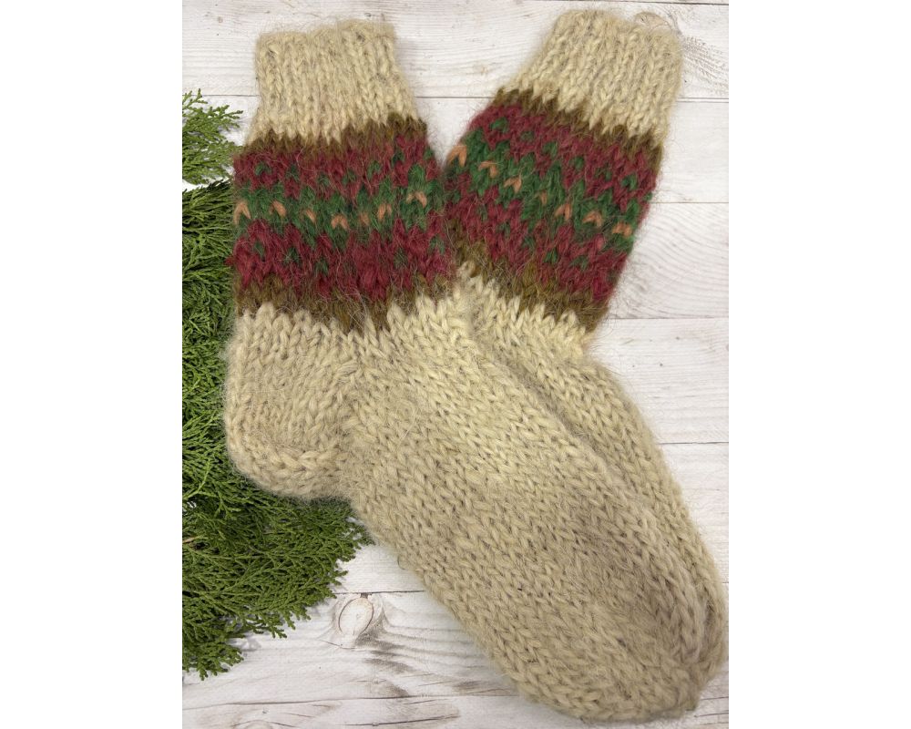 Зимові в'язані шкарпетки з овечої шерсті, теплі, комфортні, ручна робота.