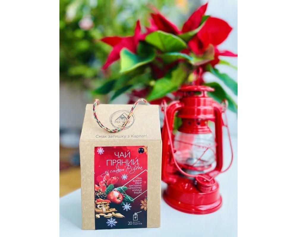Пряний чай зі смаком Різдва – особливий чай, який бездоганно смакує протягом свят! Як тільки ви відкриєте упакування, поставите фільтр мішечок до горнятка і залиєте окропом… пряний, запашний аромат наповнить вашу оселю