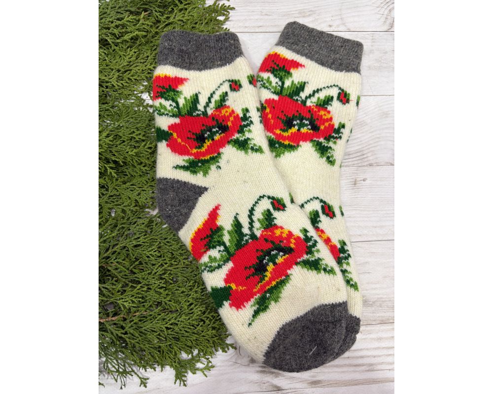 Жіночі теплі шкарпетки з овечої вовни Маки