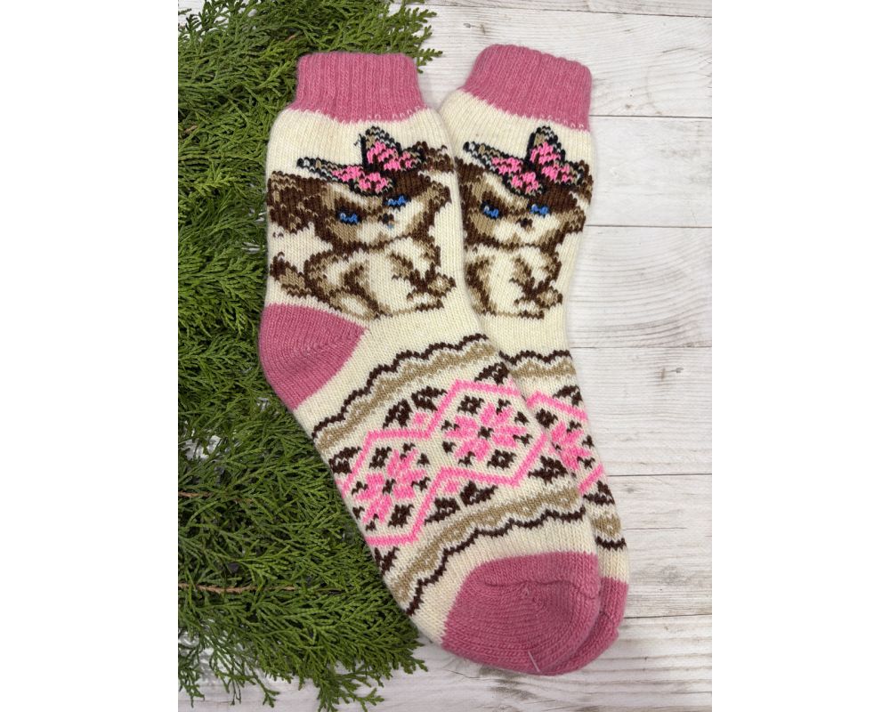 Жіночі теплі шкарпетки з овечої вовни Киця