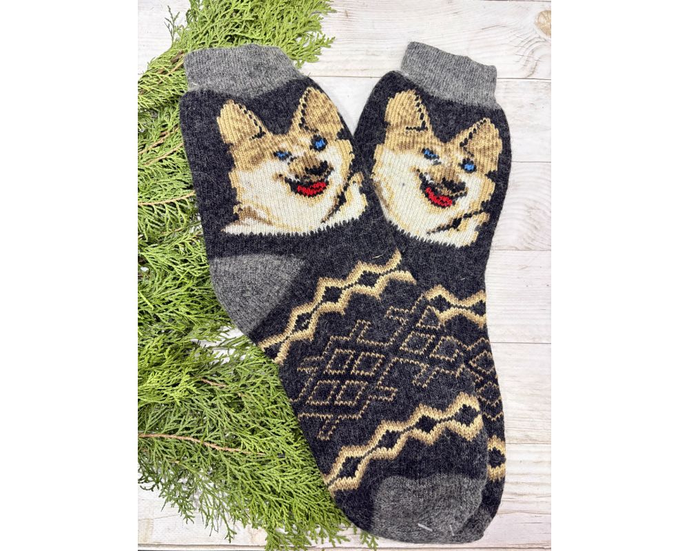 Чоловічі шкарпетки з овечої вовни з етнічним орнаментом
