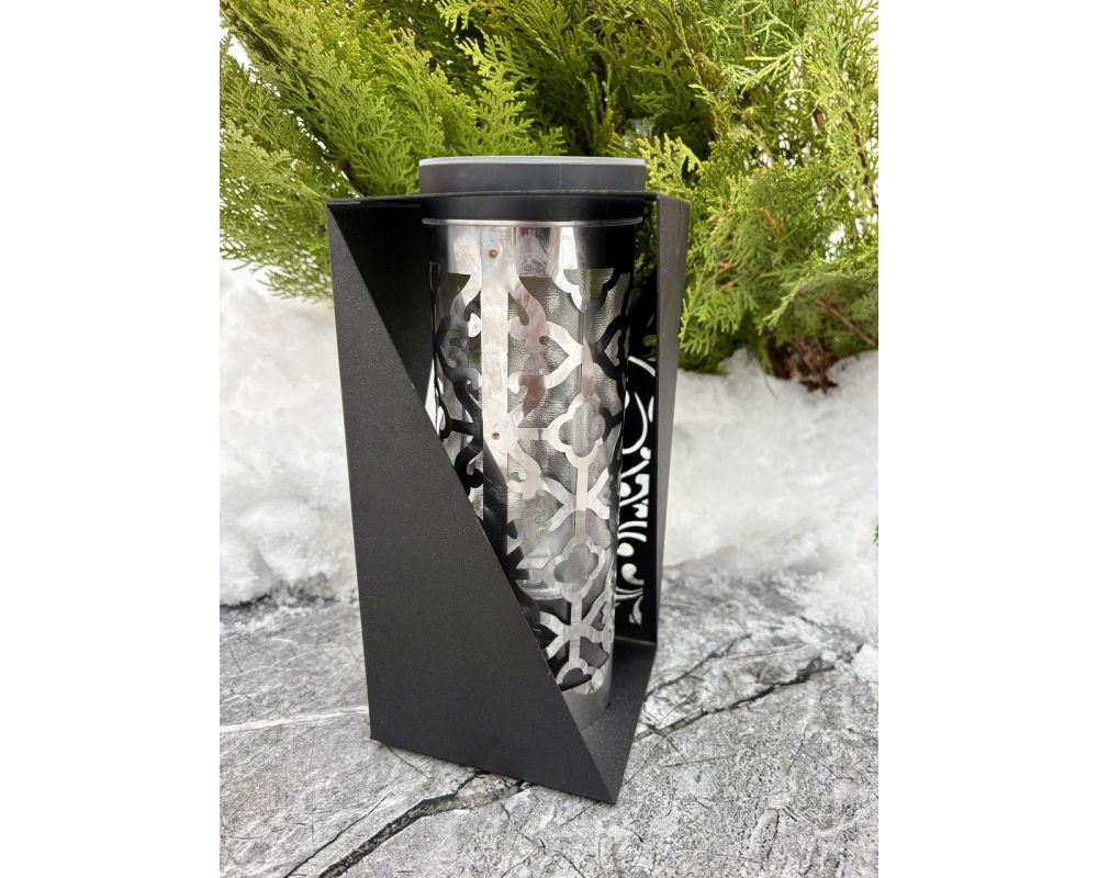 Лампадка на сонячній батареї чорна металева — LED