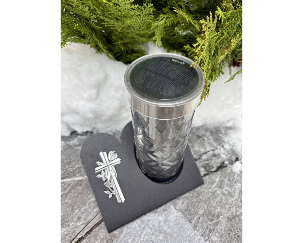 Лампадка на сонячній батареї чорна металева з хрестом — LED