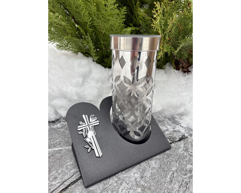 Лампадка на сонячній батареї металева з хрестом — LED, преміум дизайн. Розмір 21х18х13 см.