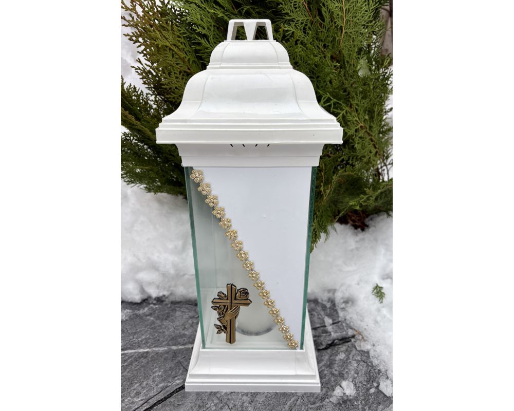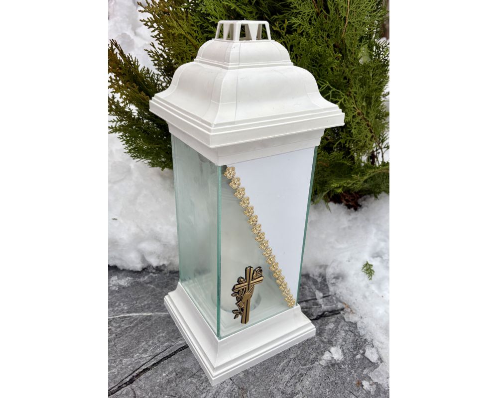 Лампадка у формі каплички з хрестом | 120 годин горіння | Лампадка біла скло з хрестом із запаскою