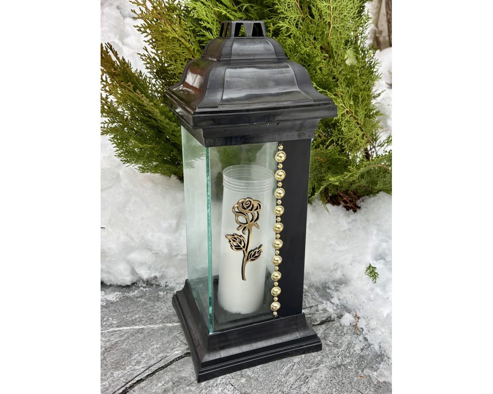 Лампадка у формі каплички з хрестом | 120 годин горіння | Лампадка чорний колір скло з хрестом із запаскою
